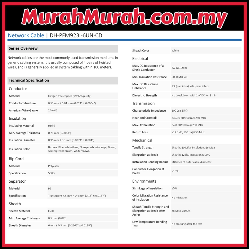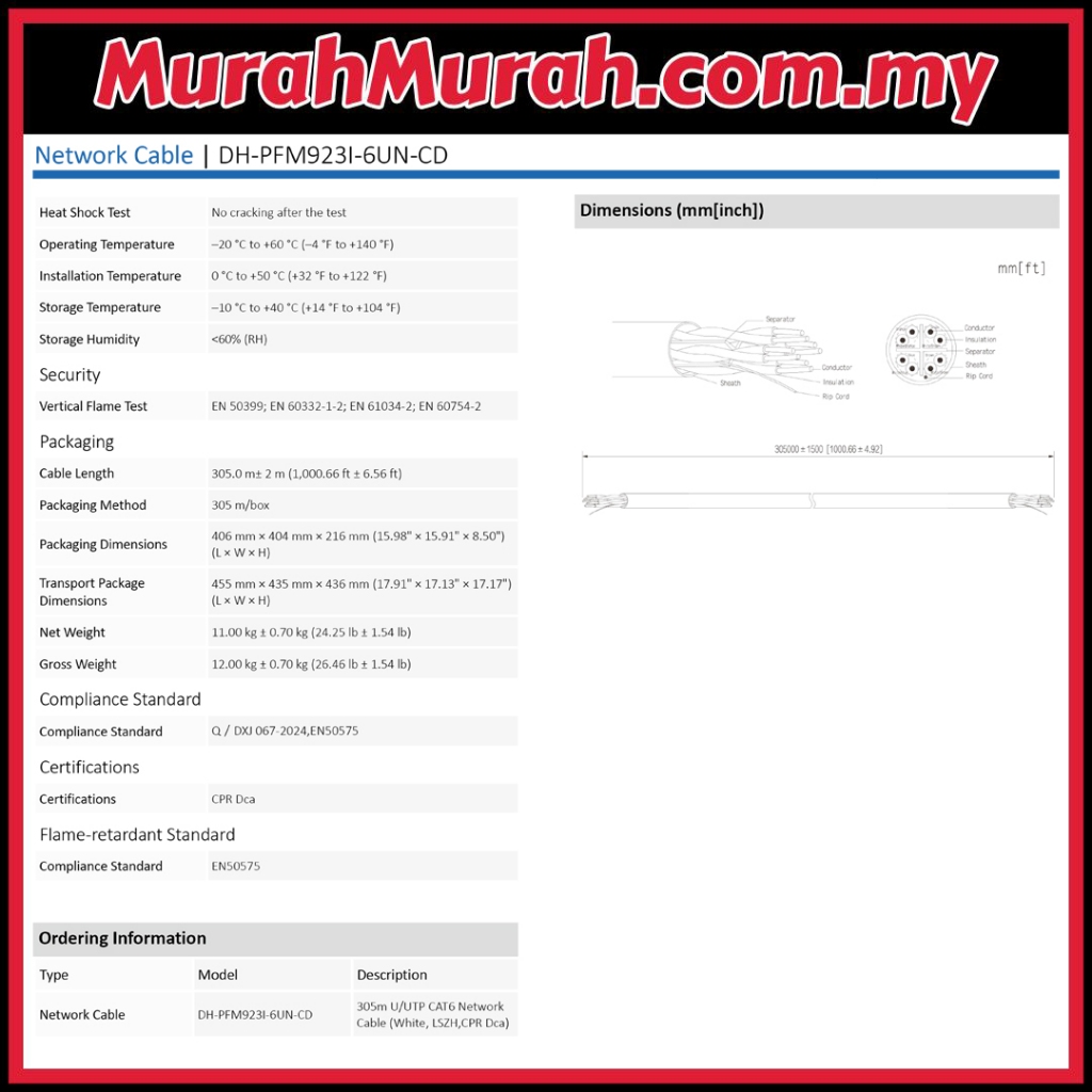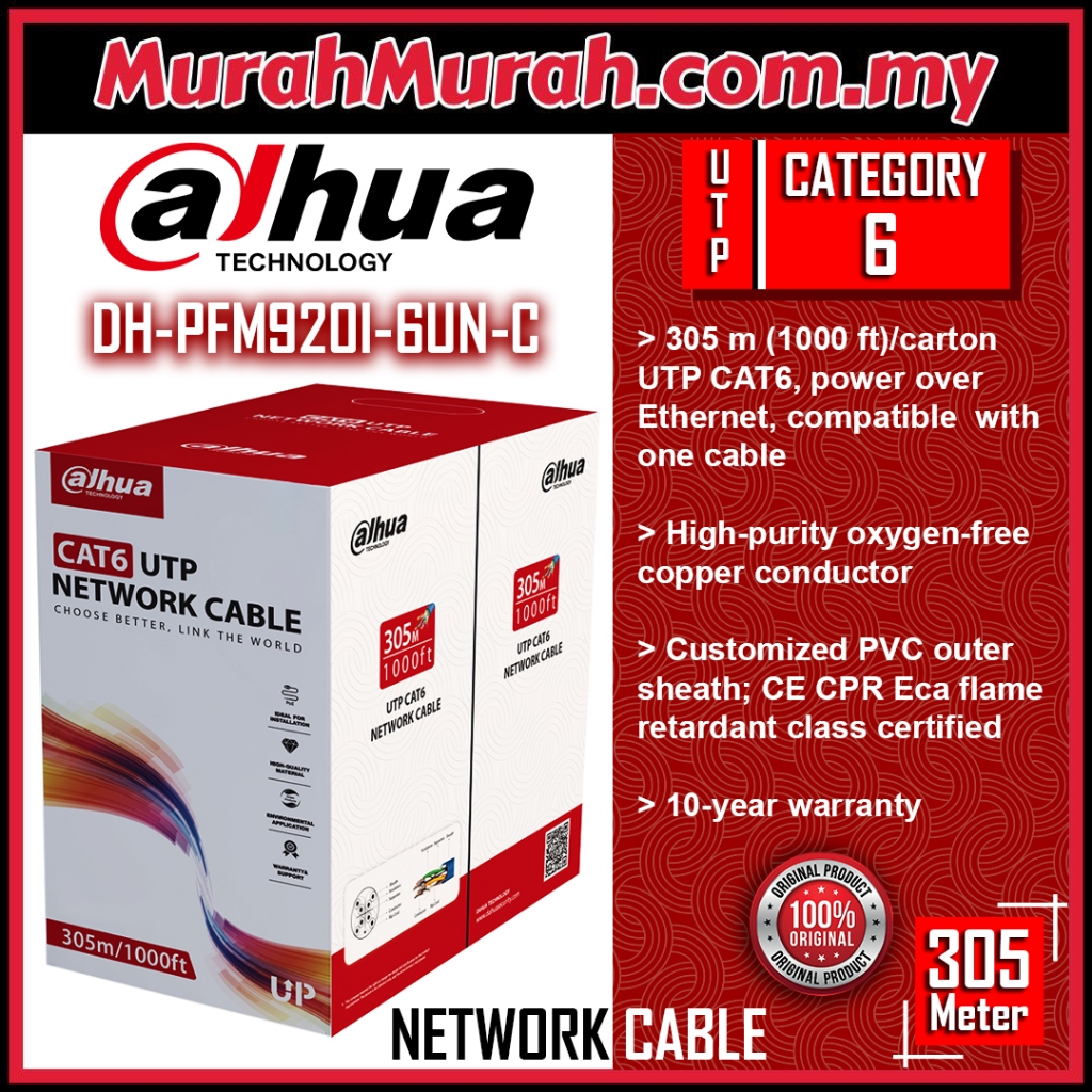 DAHUA PFM920I-6UN-C Network Cable 24AWG CAT 6 / CAT6 UTP LAN Internet Ethernet For CCTV Installation POE RJ45 305M