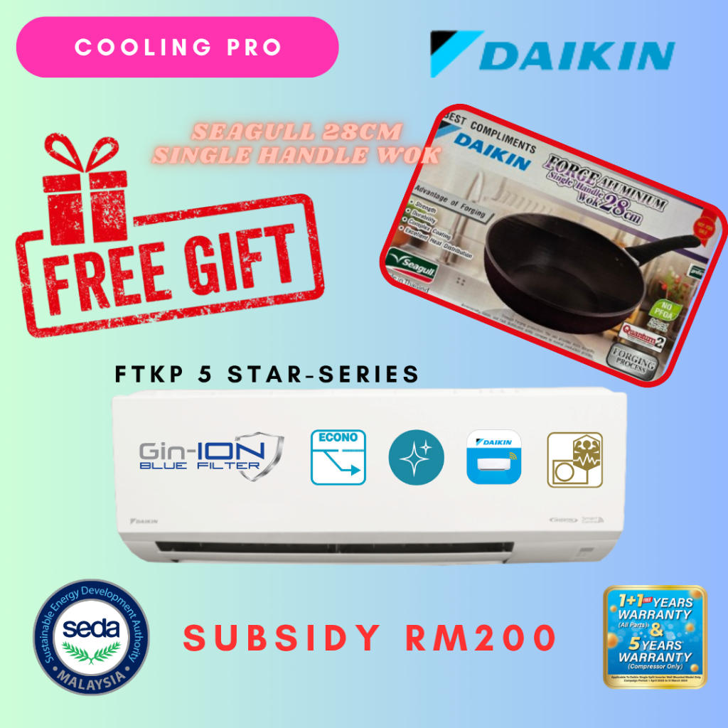 DAIKIN 1.0-2.5HP 5 Stars Inverter Air Conditioner FTKP Series R32 Built-in WiFi
