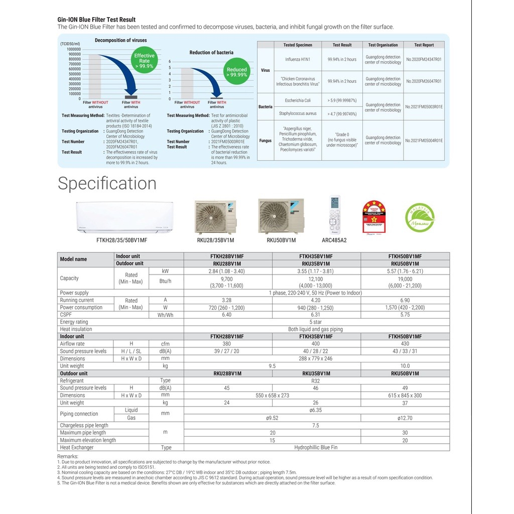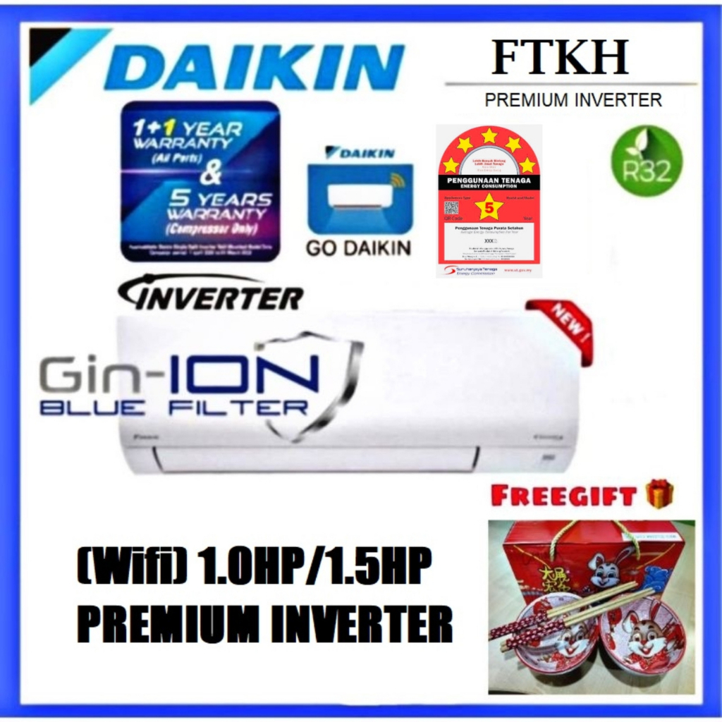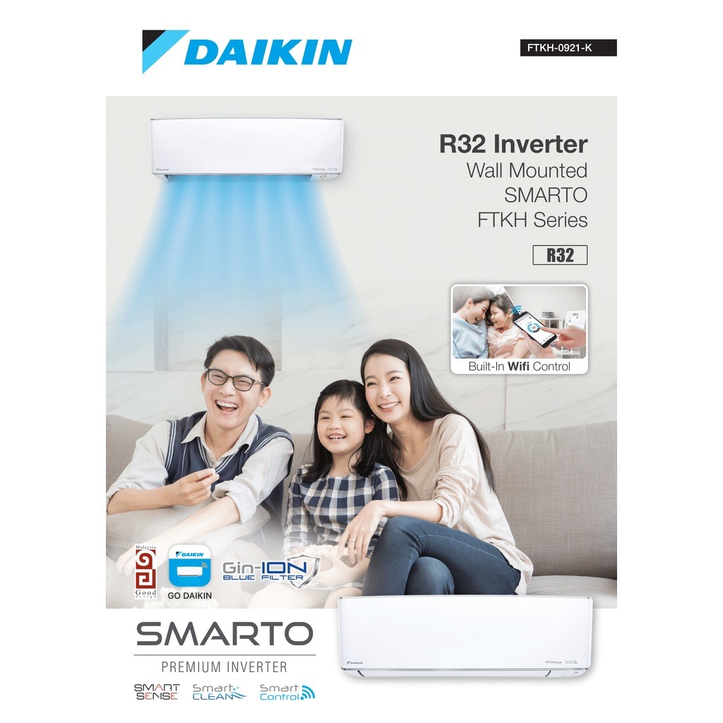 DAIKIN 1.0HP/1.5HP/2.0HP AIR-CONDITIONER PREMIUM INVERTER FTKH SERIES(FTKH28B/FTKH35B/FTKH50B)GIN-ION+WIFI+SMARTCONTROL