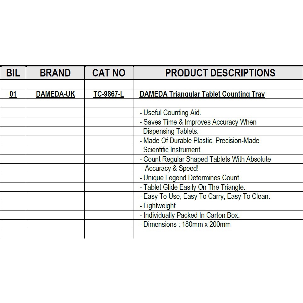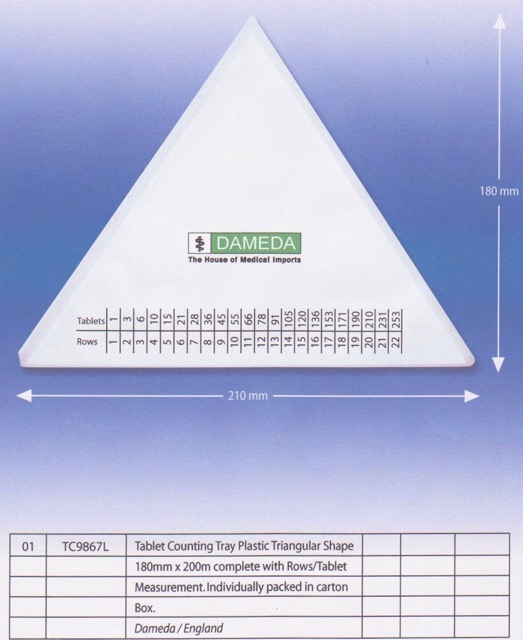 DAMEDA UK | Triangular Tablet Counting Tray | To Be Supplied Without Its Carton Box