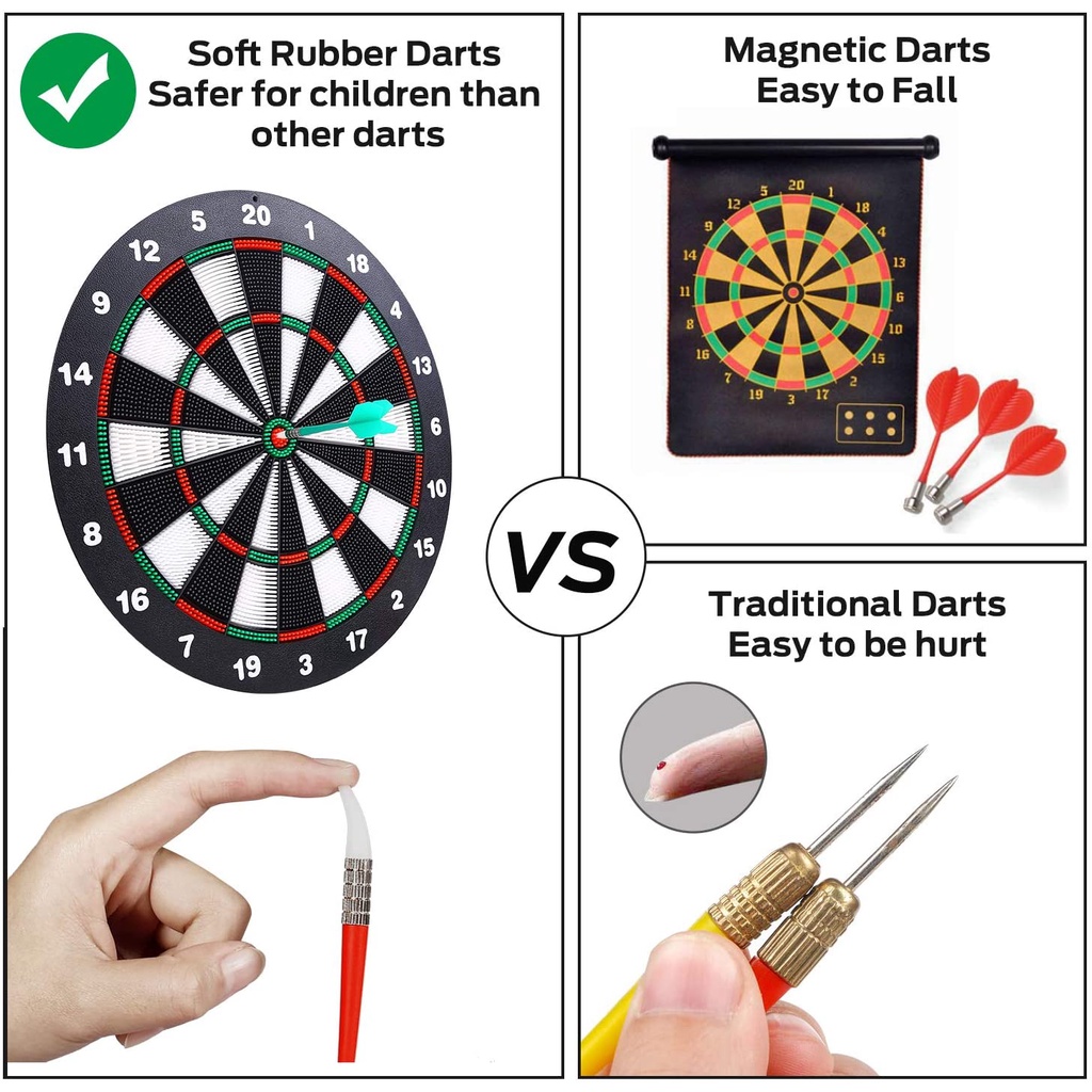 DART SET GAME WITH 6 DARTS SOFT TIP SET DART BOARD FOR ADULTS OR KIDS Rubber Dartboard 16INCH