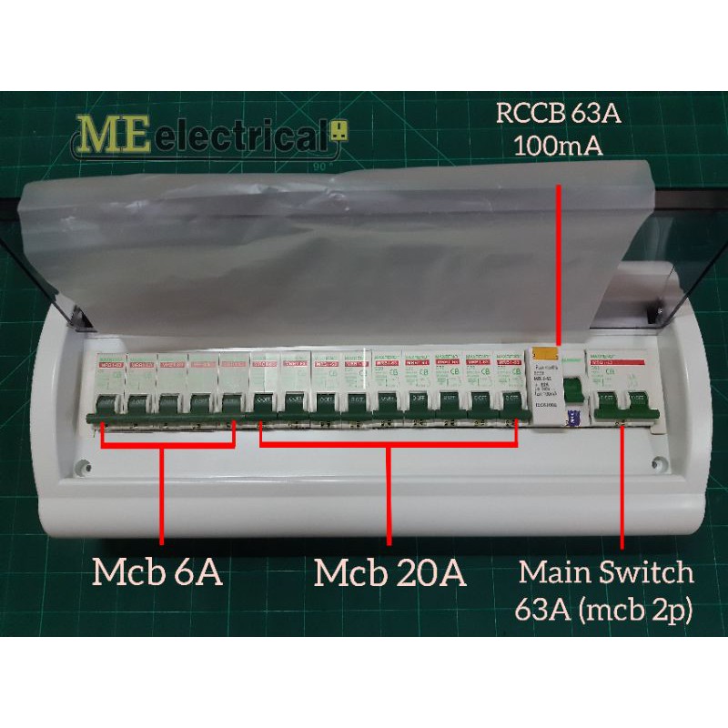 DB BOX 19way (Full set) MAXRENO MCB 6A-20A + RCCB 63A + Main switch 63A