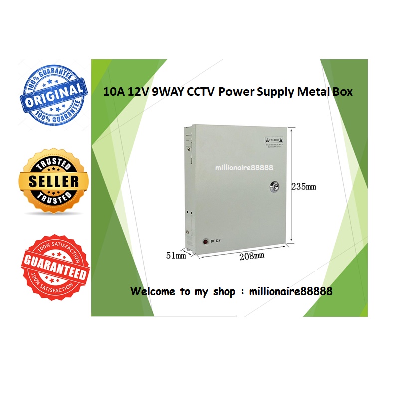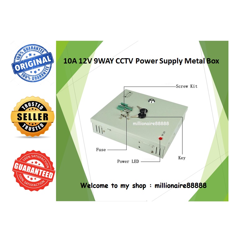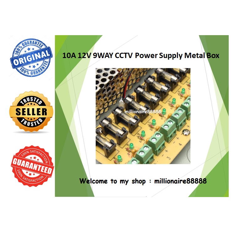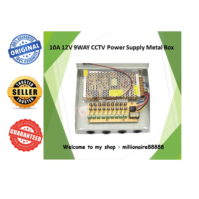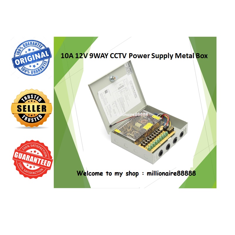 DC 12V 10A 9 Way Power Supply Metal Box for CCTV System High Quality - Suitable for 8 Channel DVR