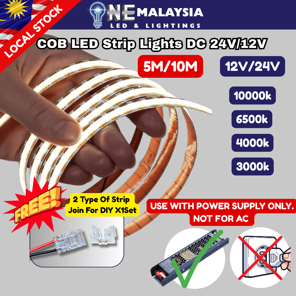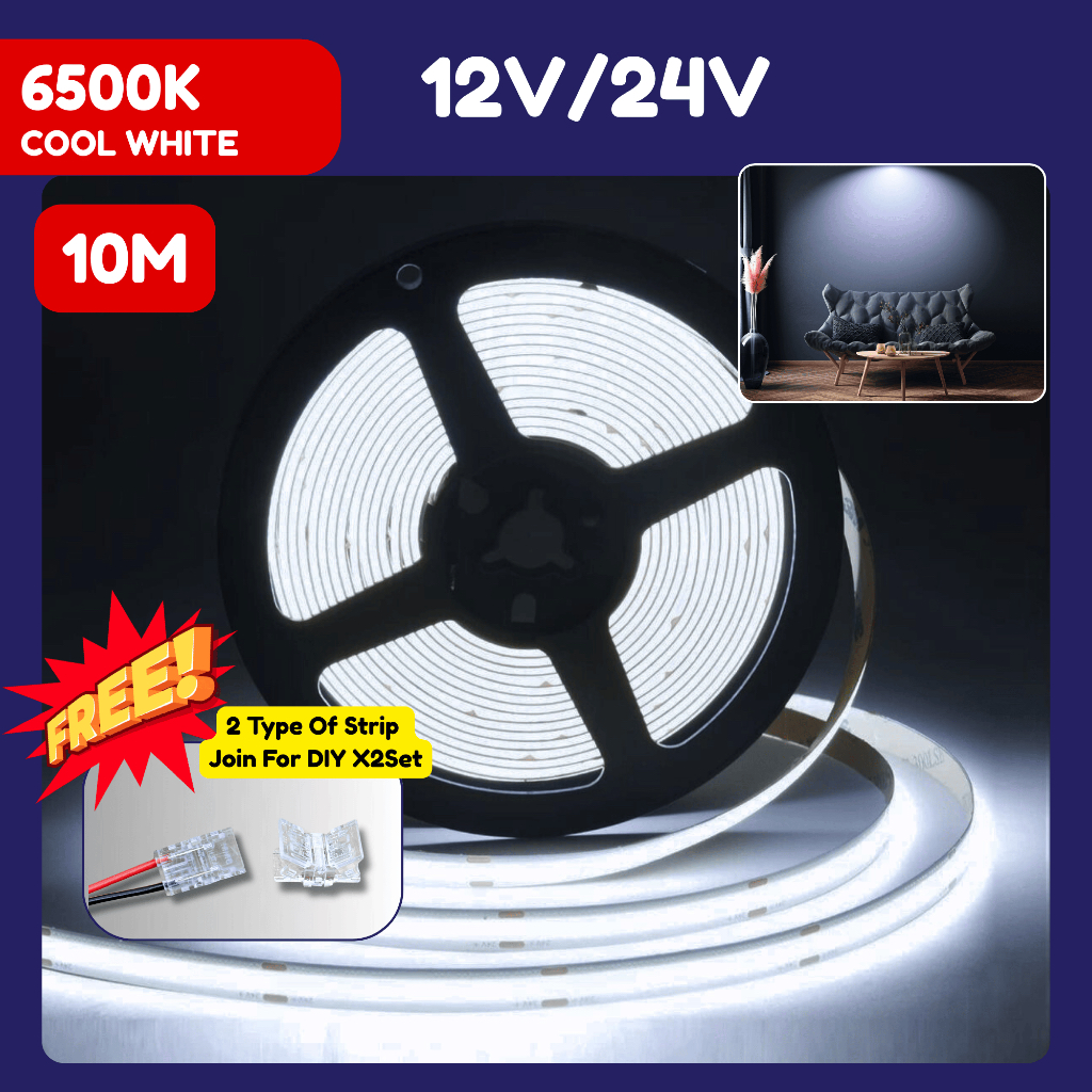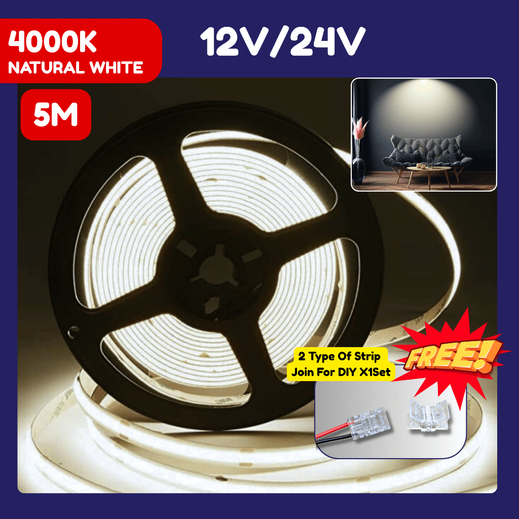 DC 12V/24V COB LED Strip Light 3000K Warm White/4000K Natural White/6500K Daylight/10000k CoolDay