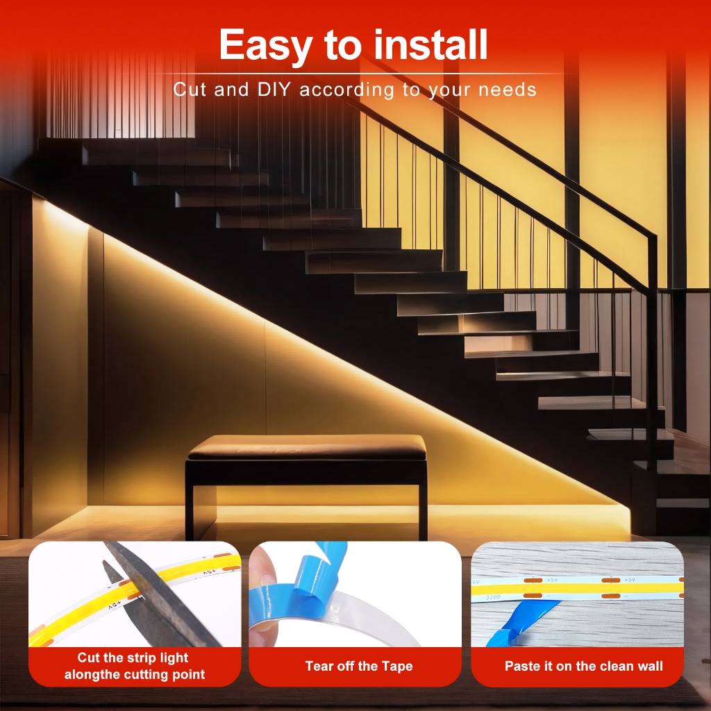DC 5V COB LED Strip 320LEDs/m High Density Flexible COB LED Tape Light Bar 8MM PCB Linear Light 0.5m-5m Warm Natural White