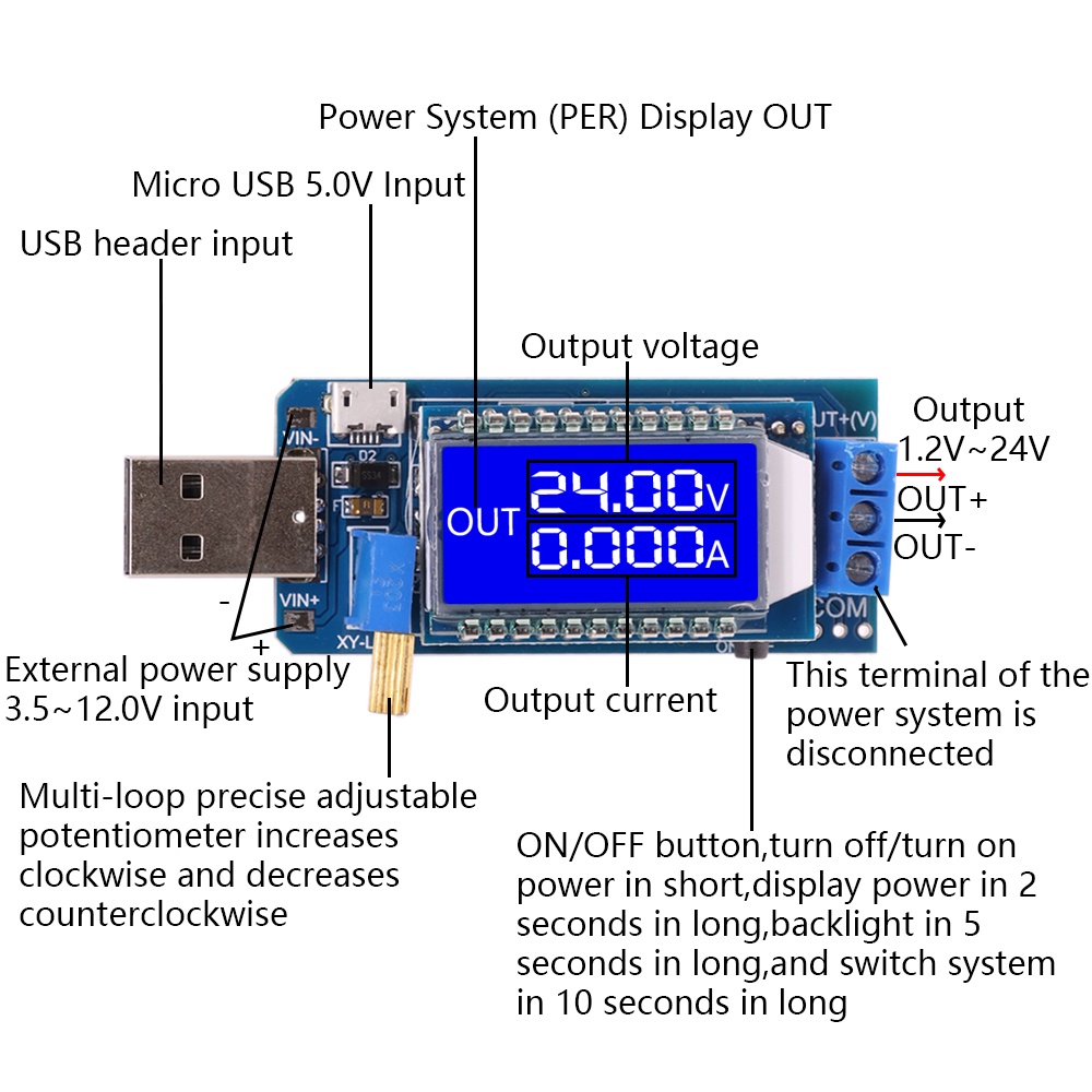 DC-DC 5V to 3.5V / 9V / 12V LCD USB Step UP / Down Power Supply Module Adjustable Boost Buck Converter Out DC 1.2V-24V XY-LUP