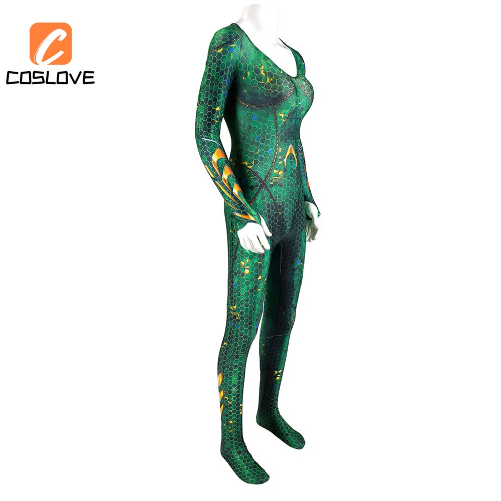 DC Movie Aquaman Mera Queen Cosplay Tight Fitting Zentai Suit Jumpsuit Green Color Suit Same Style Costume Suit for Women Party Performance