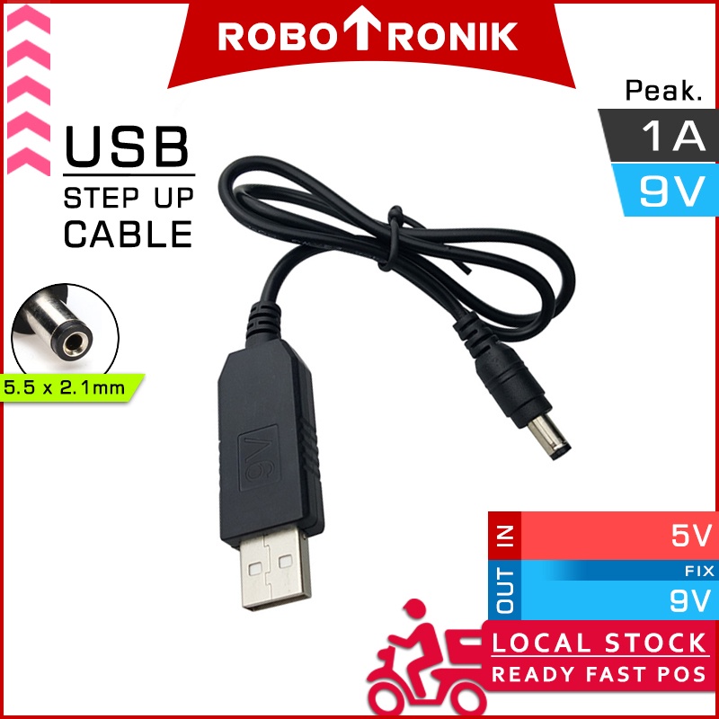 DC Power Step-Up USB Cable 5V > 9V / 12V, Portable Power-bank boost converter to Modem Router Arduino UNO