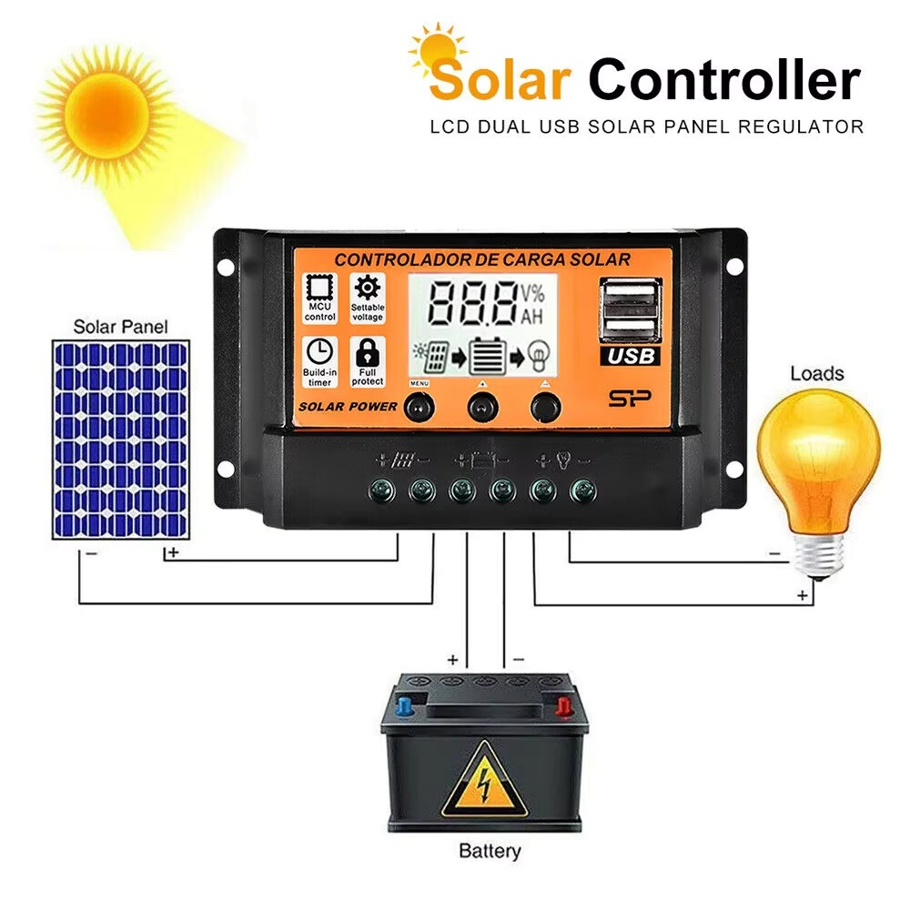 DC Solar Panel Board 12V 50W Battery Charger Dual USB With 10A-30A Solar Controller Rrgulator Solar Cell Power Bank for outdoot camping Garden Car CCTV surveillance camera