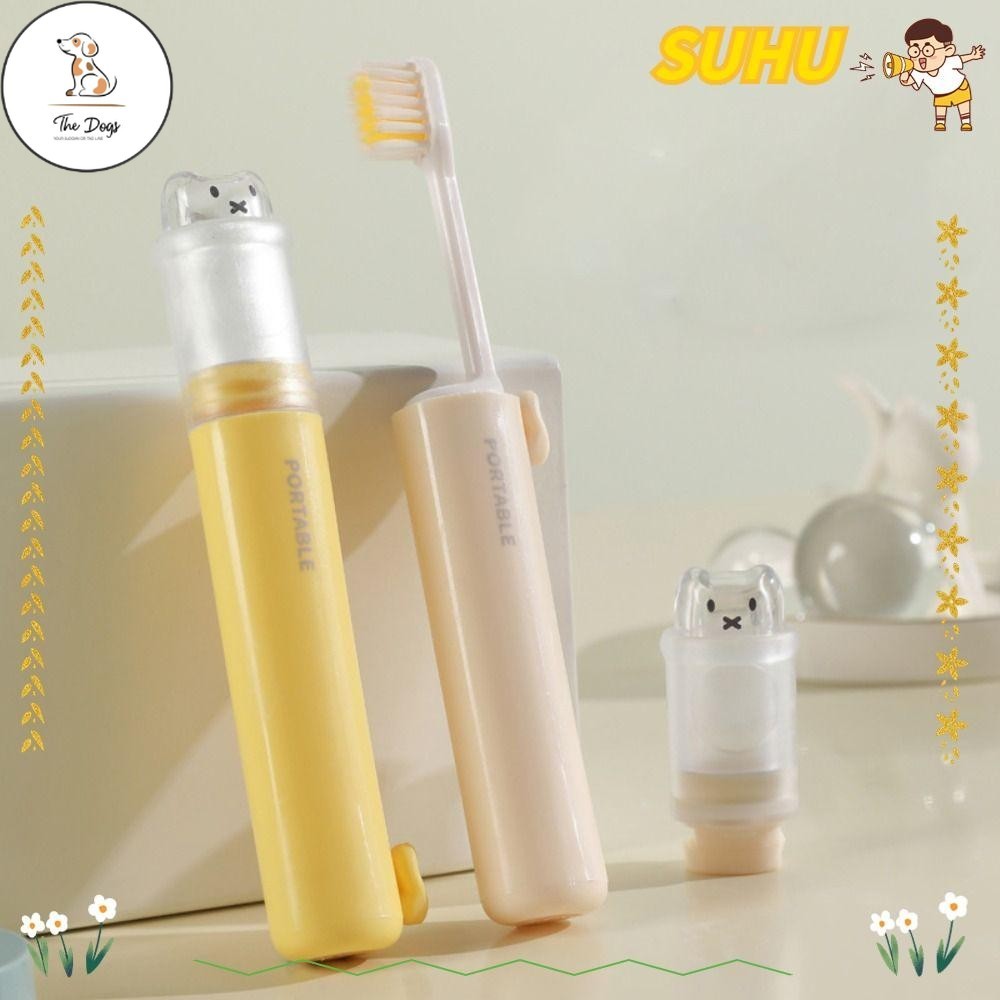 DC Travel Toothbrush, Mini Portable Toothpaste Dispenser, Cute Foldable 2-IN-1 Toothbrush Set for Outdoor Camping Trav