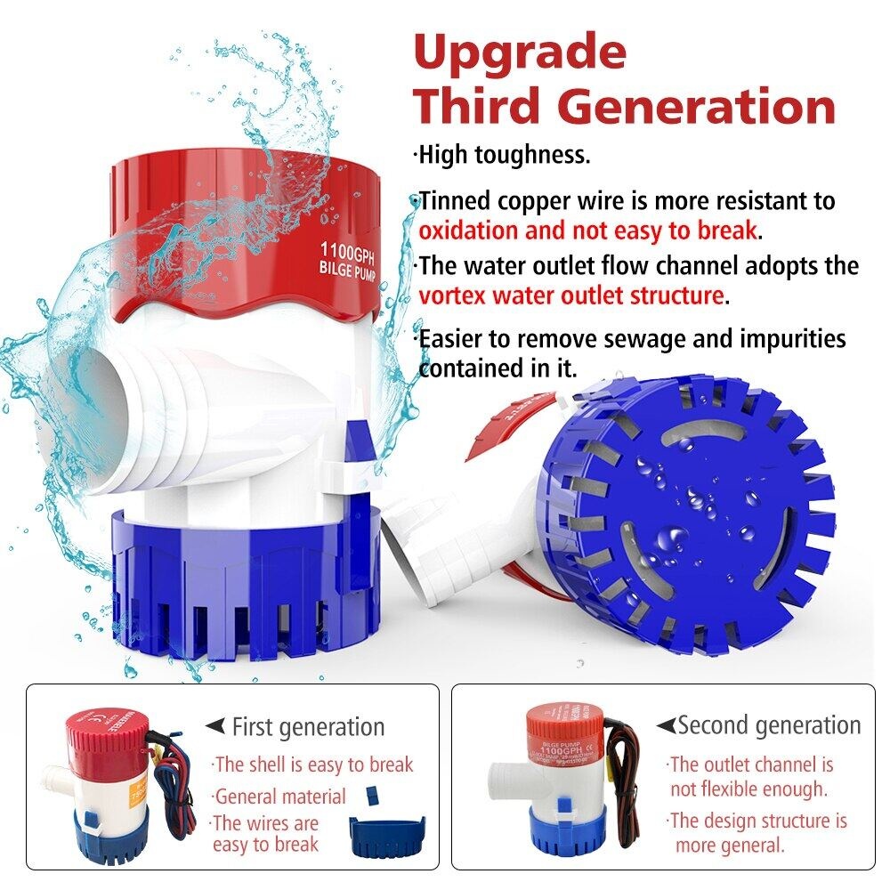 DC Water Pump 1100gph 12V/24V Non-Automatic Marine Submersible Boat Bilge Pump yacht pump RV water pump