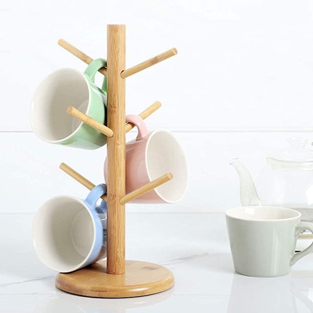 DC Wooden Cup Holder Wooden Japanese Style Tree Rack 6 Hook Shelves Coffee Mug Kitchen Organizer Tempat Penyangkut Cawan