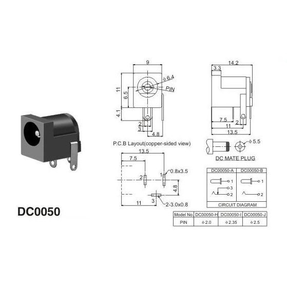 DC005 Barrel Jack Adapter Male 2.1mm x 5.5mm