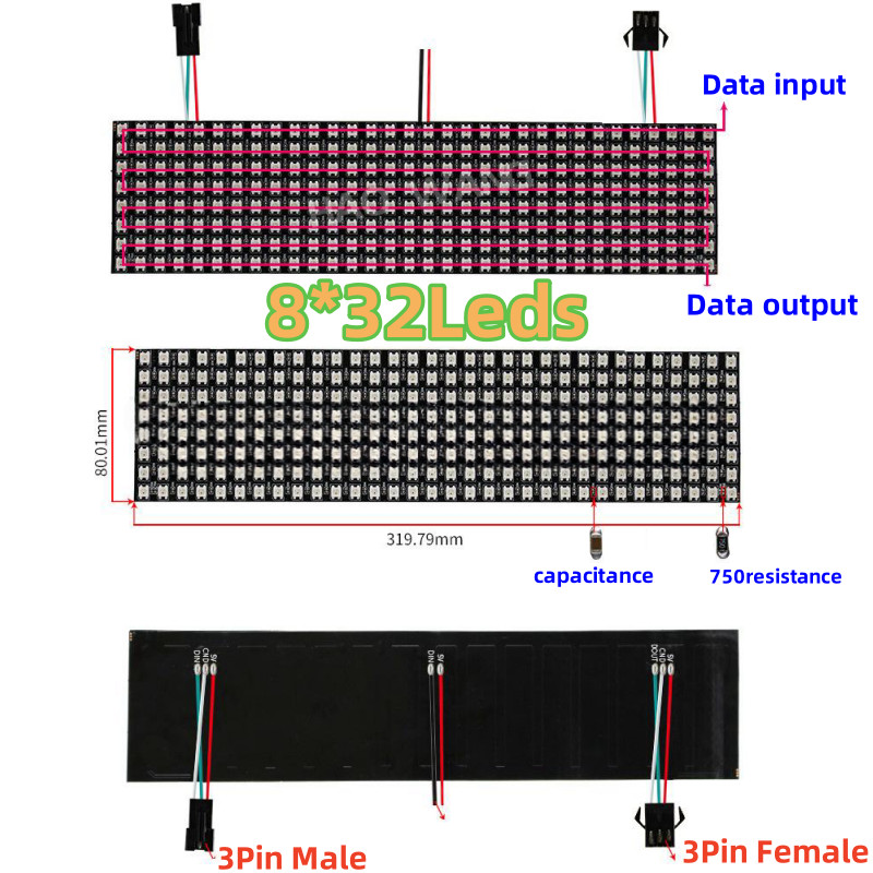 DC5V WS2812 Led Digital Flexible Individually Addressable Panel Light Strip 2812 8x8 16x16 8x32 Module Matrix Screen Panel Light