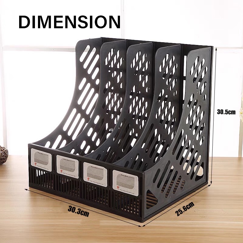 DCR 4 Divider Magazine Holder File Stand Rack Home Office Document Storage Paper Tray Organizer Organizer Rak Dokumen