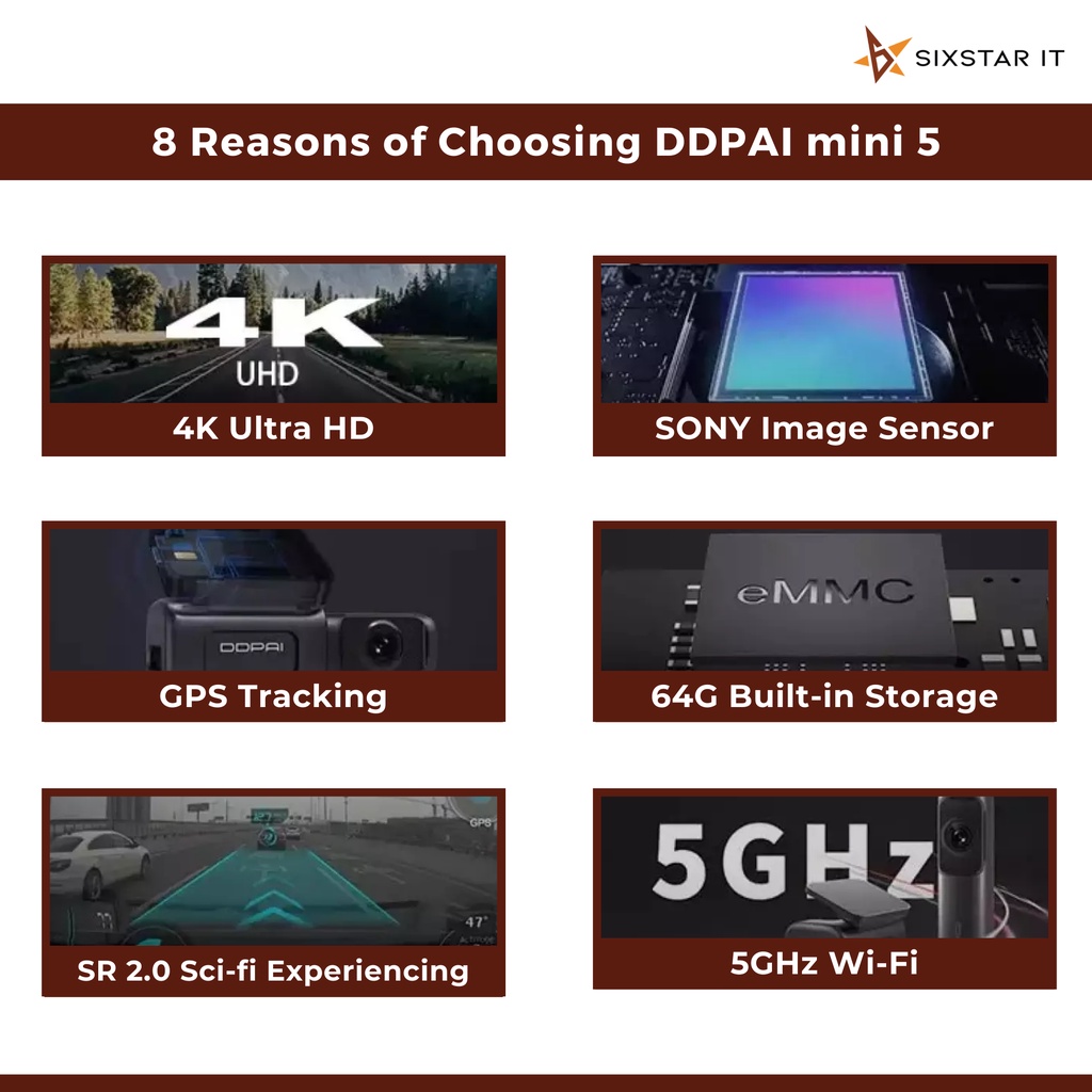 DDPAI Dash Cam Mini 5 High Resolution 2160P (4K) Ultra HD Car Dashcam (Built in 64 GB eMMC Storage)