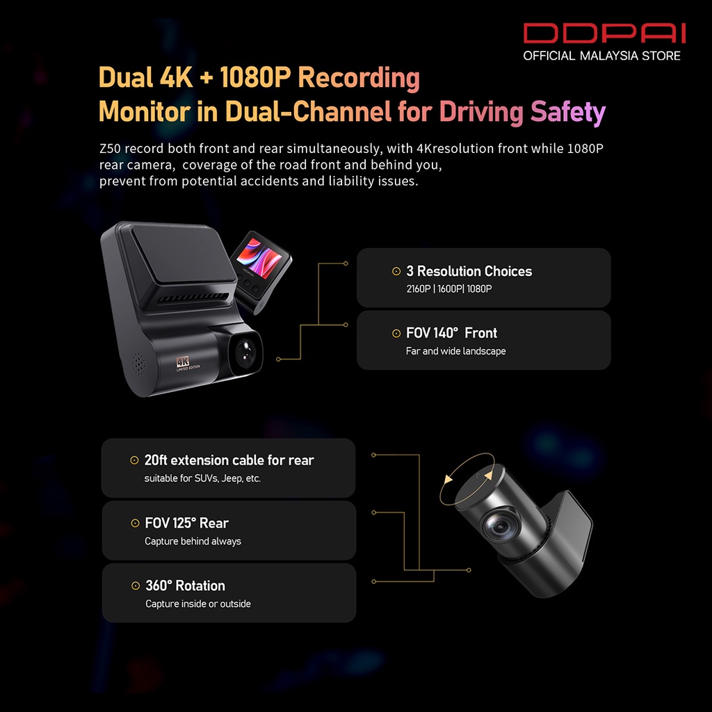 DDPAI Z40 1944P / Z50 8MP Camera 4K Dash Cam ADAS GPS Dual Camera Front & Rear Camera Sony Sensor