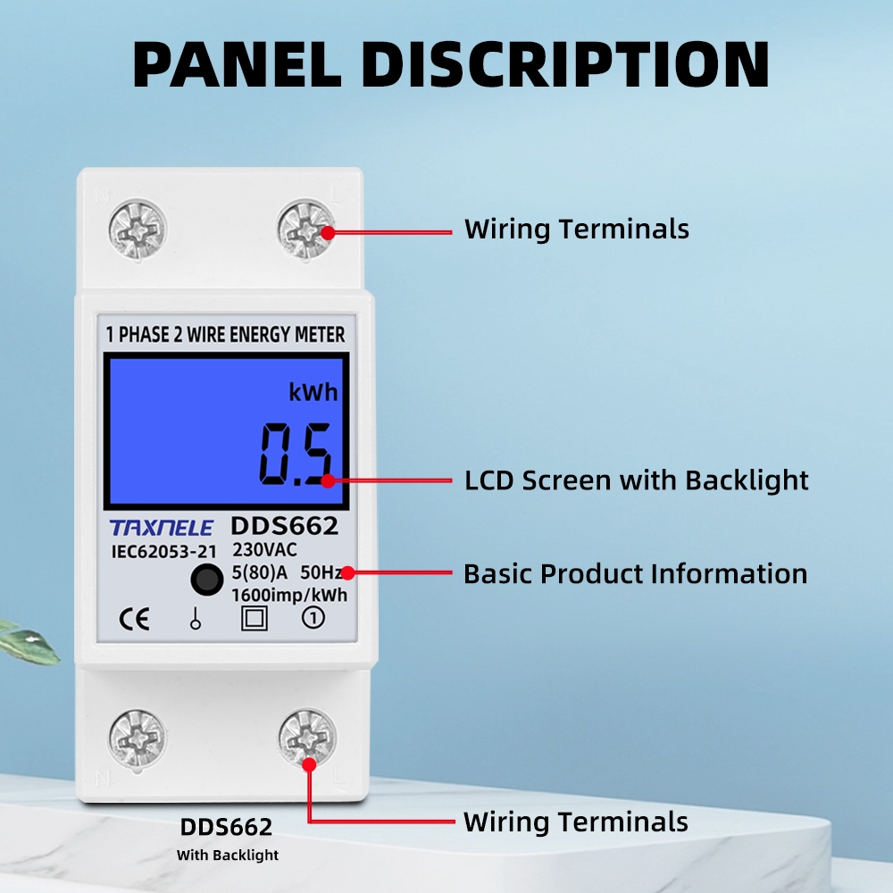 DDS662 DDS668 Din Rail LCD Backlight Single Phase Energy Meter kWh Power Consumption Meter Wattmeter Voltage Current AC 220V 110V Reset Zero