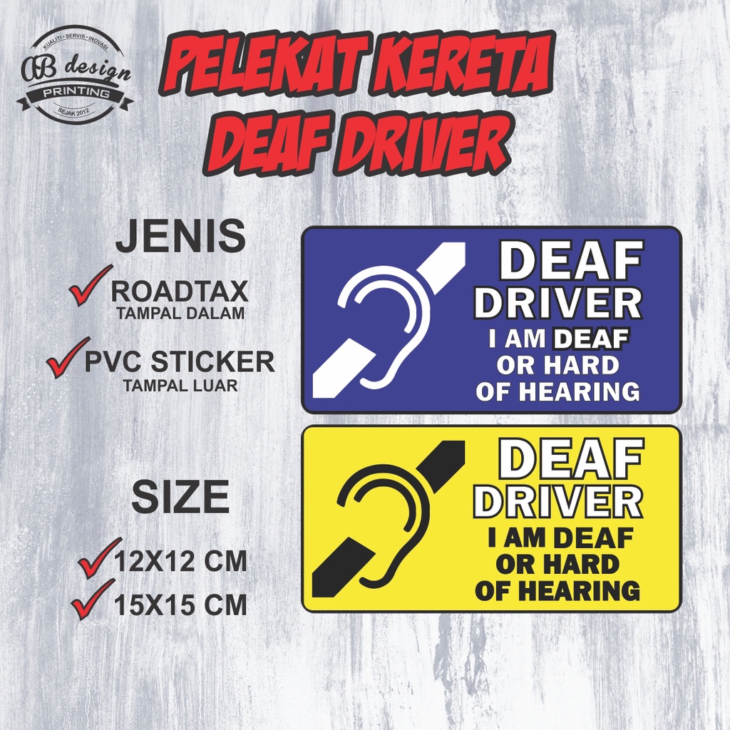 DEAF DRIVER Sign Sticker / Pelekat Sticker KERETA DEAF DRIVER READY STOCK