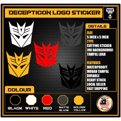 DECEPTICON STICKER. TRANSFOMER STICKER. AUTOBOT.OPTIMUS PRIME. BUMBLEBEE. CAR STICKER. STIKER KERETA.STICKER MOTOR.