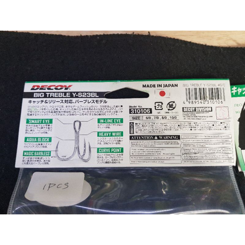 DECOY ORIGINAL, BIG TREBLE HOOK Y-S23BL(magic bartless model)