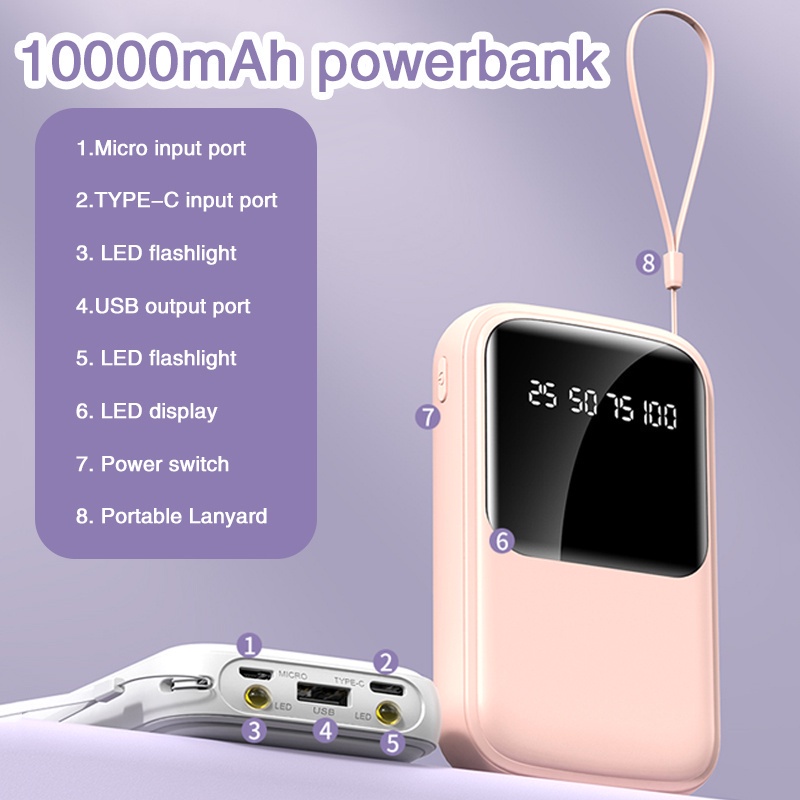 DEENLVA KJ155 Mini Powerbank 10000mah Powerbank Fast Charging LED Power Display with Flashlight for For Huawei Samsung Xiaomi IPhone
