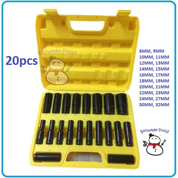 DEEP SOCKET NUT 1/2" 10PCS 20PCS SET WRENCH NUT 8MM-24MM 6PT 32MM BOX IMPACT HEAVY DUTY LONG SOCKETS NUTS SPANNER SETS