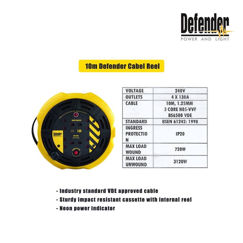 DEFENDER 10M 15M 20M 30M 50M Industrial Extension Cable Reel Wire Reel Extension Reel