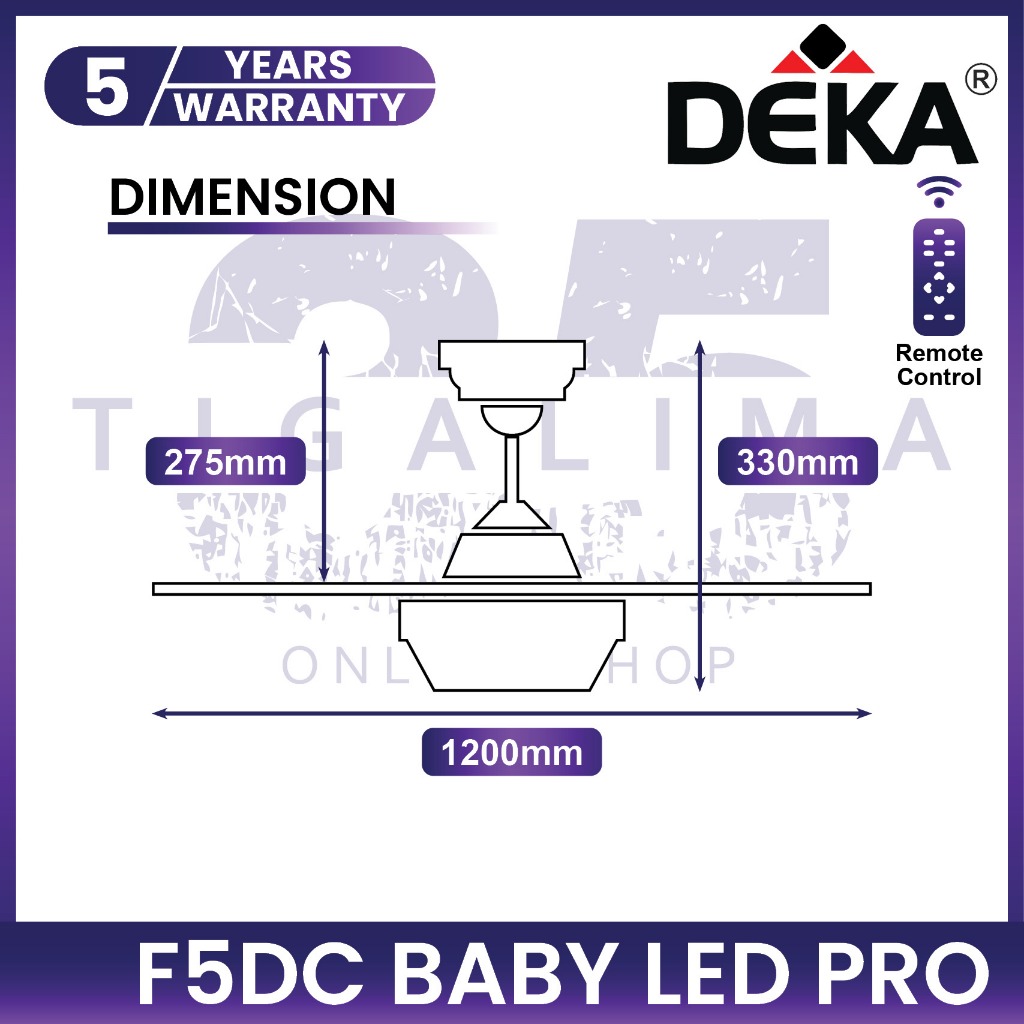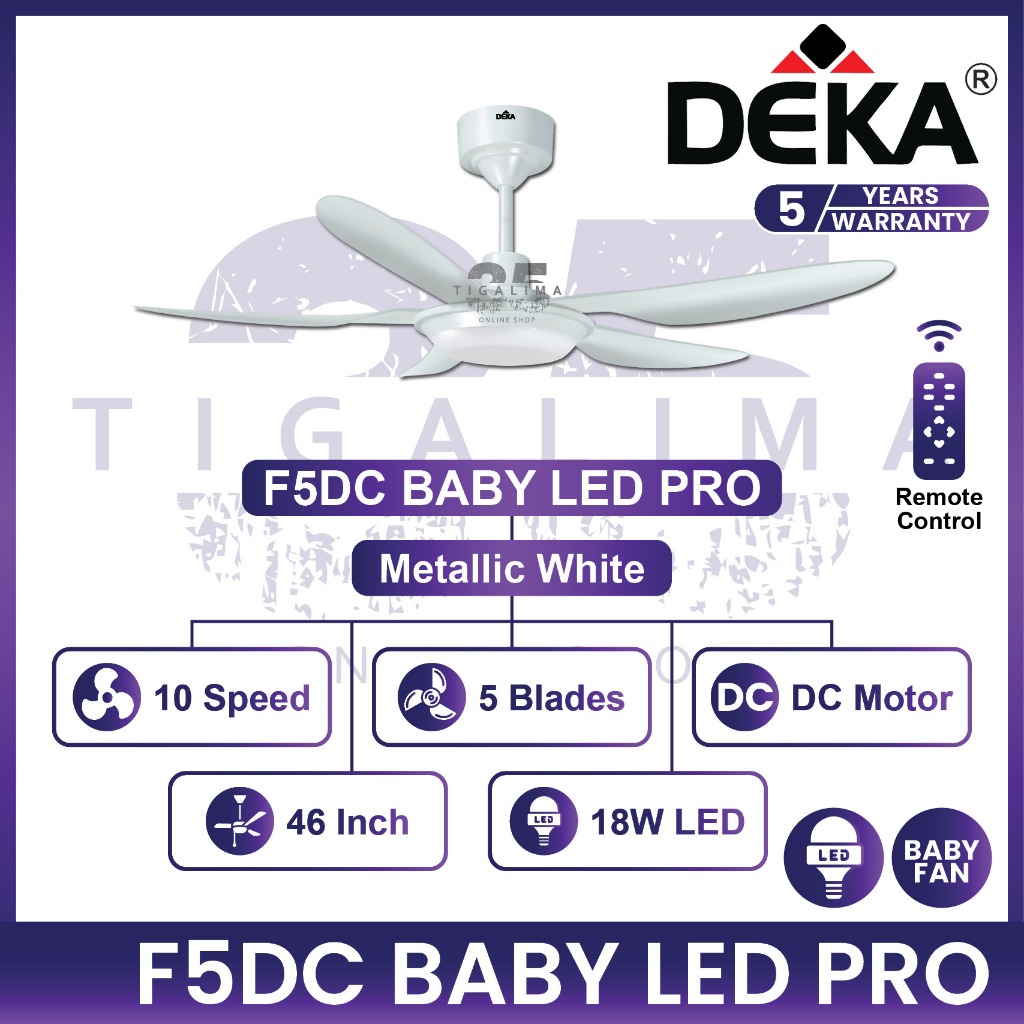 DEKA F5DC BABY LED PRO 46 Inch 5 Blades 10 Speed DC Motor Remote Control Ceiling Fan With Light Kipas Siling Syiling