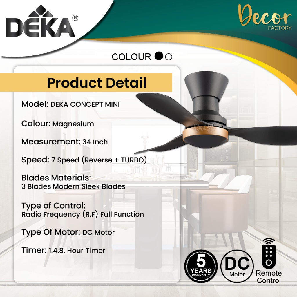 DEKA Fan DEKA CONCEPT MINI 34" 3 Blades 7 Speed Forward+Reverse DC Motor Remote Control Ceiling Fan Kipas Siling Syiling