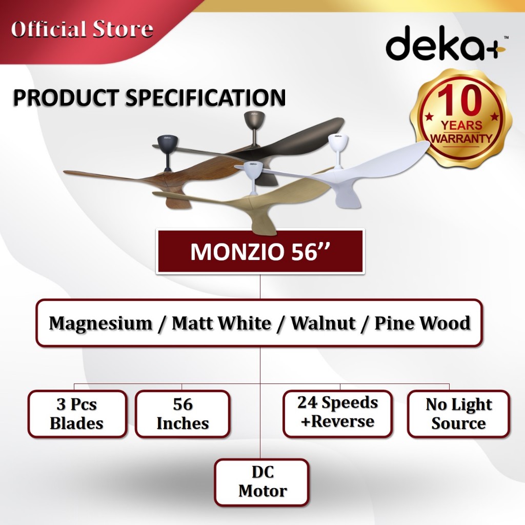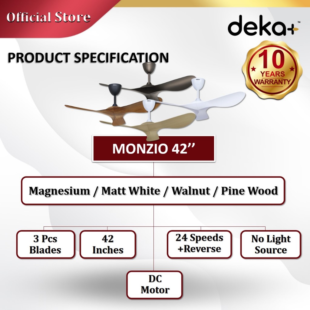 DEKA+ MONZIO 42" 56'' 3 Blades 24 Speed with RemoteControl DC Ceiling Fan Magnesium/White/ Walnut/ Pinewood Kipas Siling