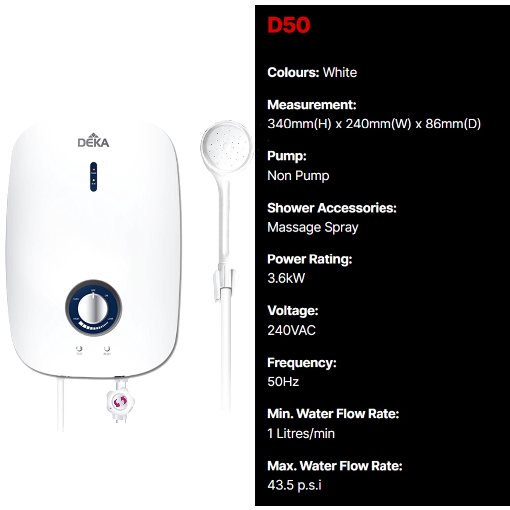 DEKA NON PUMP INSTANT WATER HEATER D50