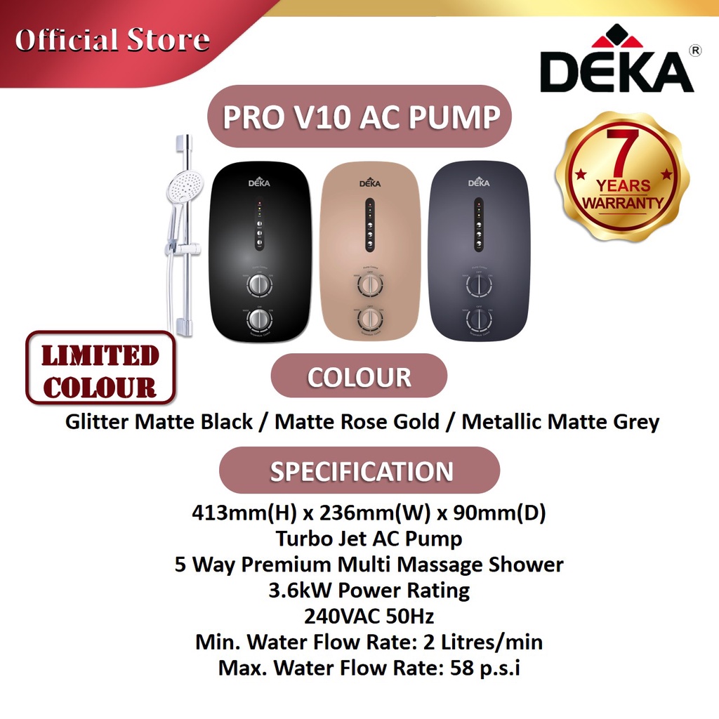DEKA PRO V10 AC-Pump Instant Heat Water Heater with Turbo Jet AC Pump Matte Black/ Matte Grey/ Rose Gold Limited Colour
