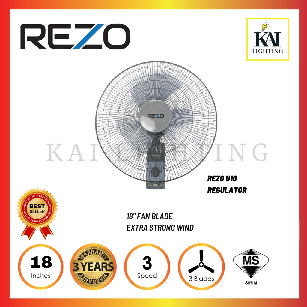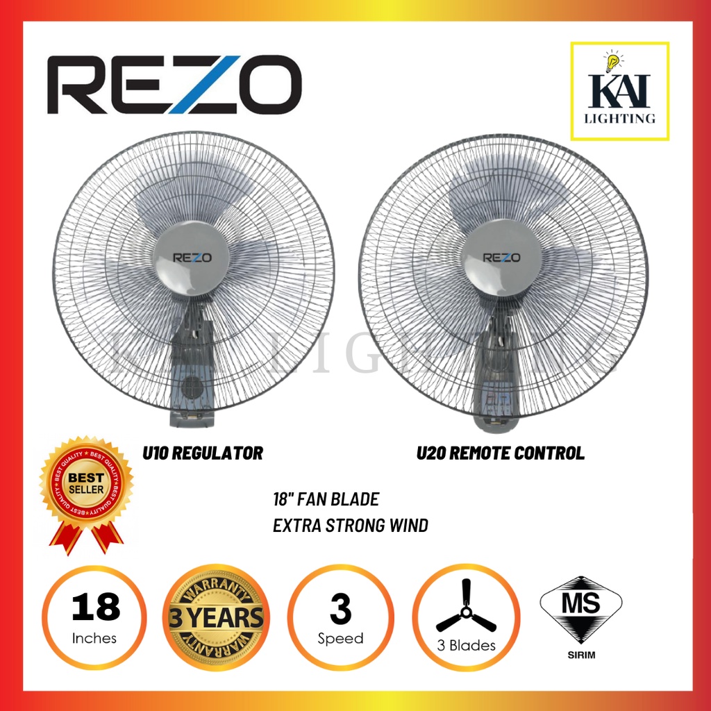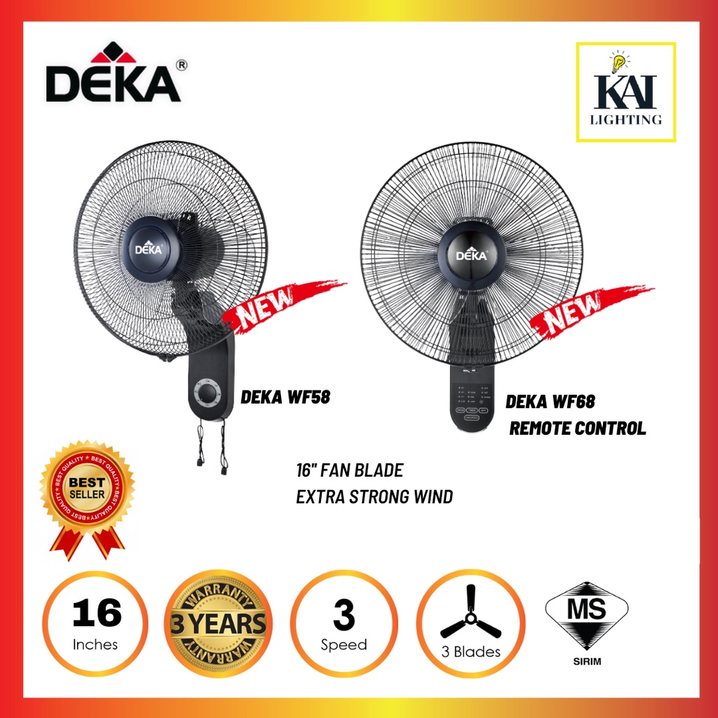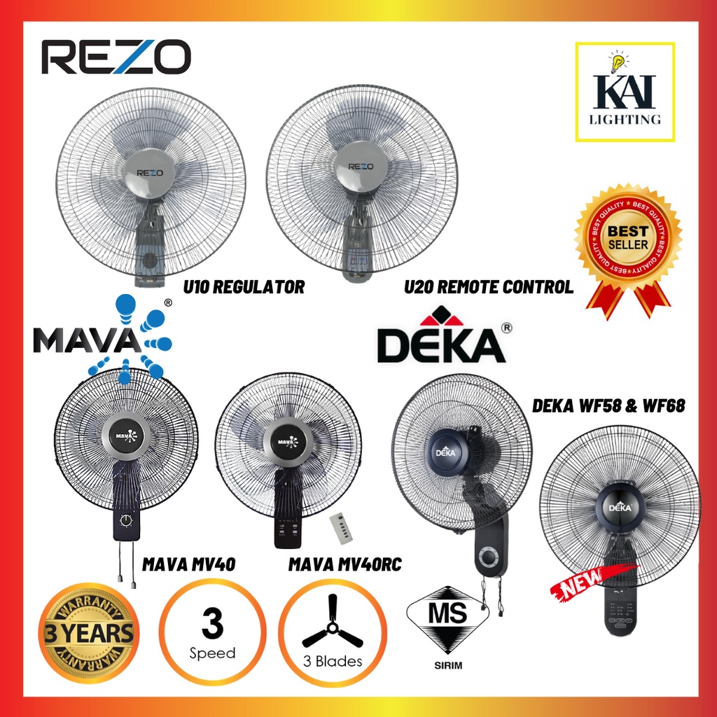 DEKA REZO Mava Wall Fan WF58/U20/WF26R 3 Speed 3 Blades Pull String/Remote Control Wall Fan Kipas Dinding Hitam