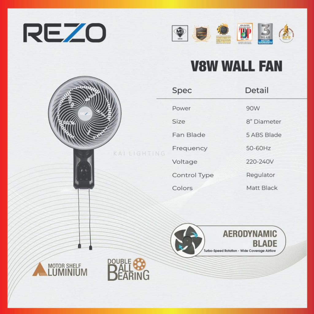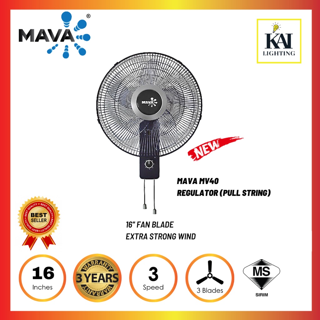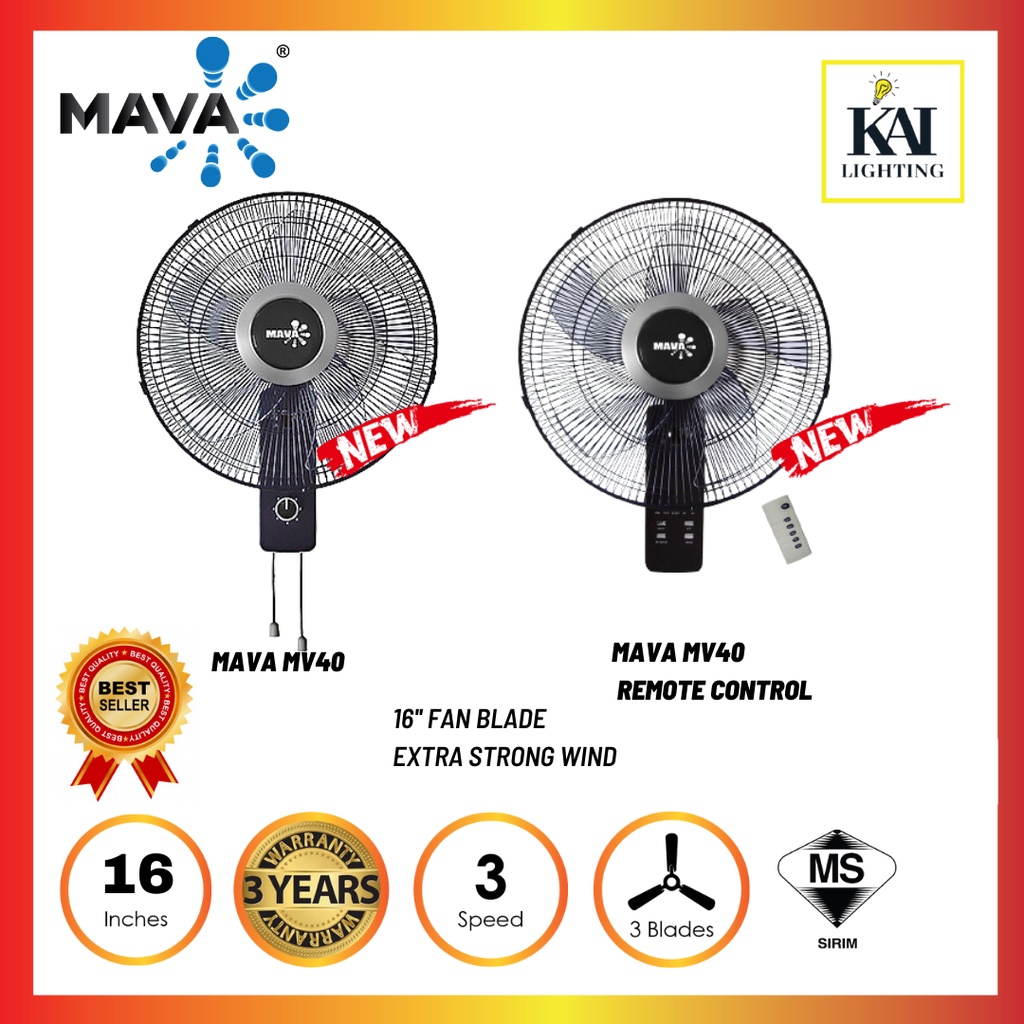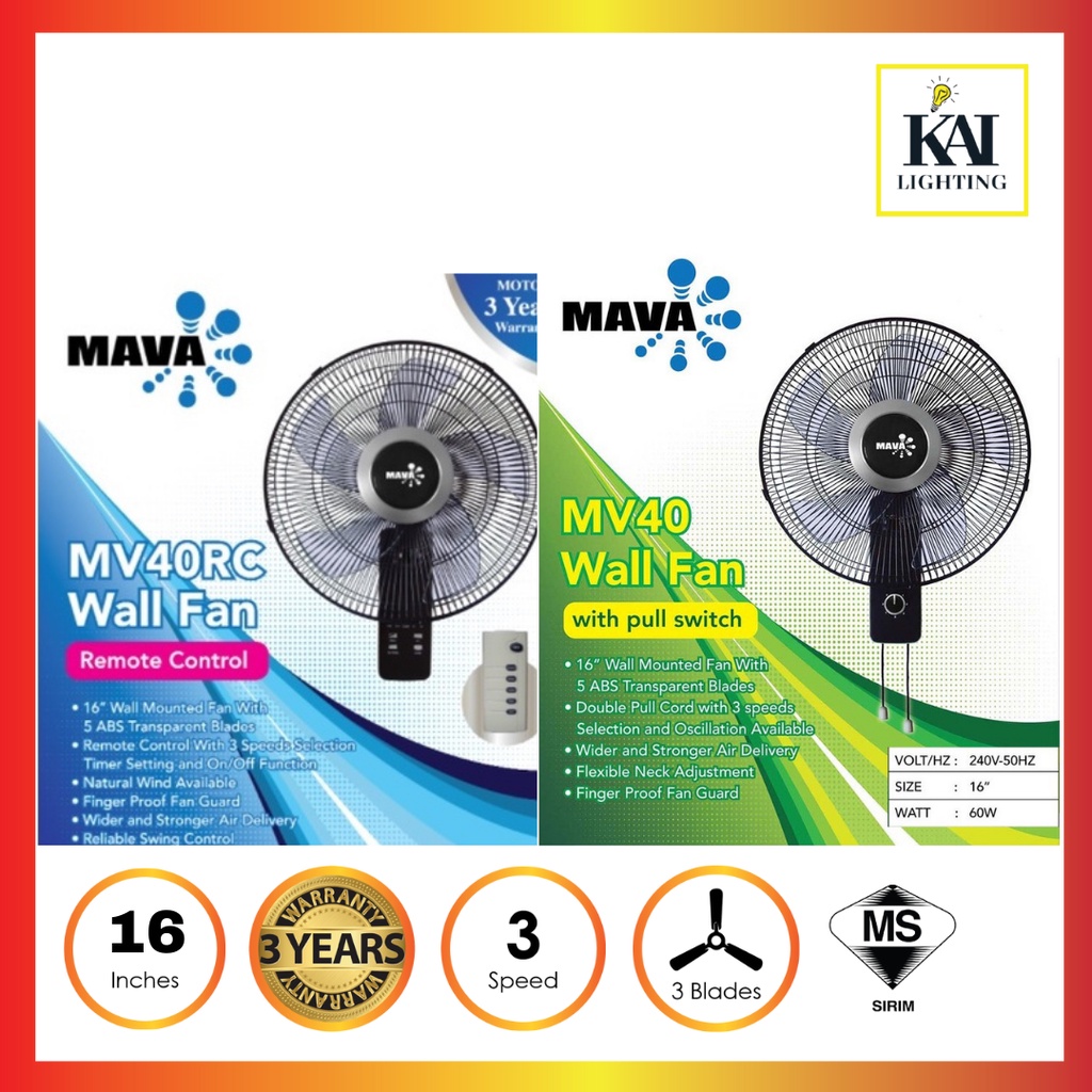 DEKA REZO Mava Wall Fan WF58/U20/WF26R 3 Speed 3 Blades Pull String/Remote Control Wall Fan Kipas Dinding Hitam
