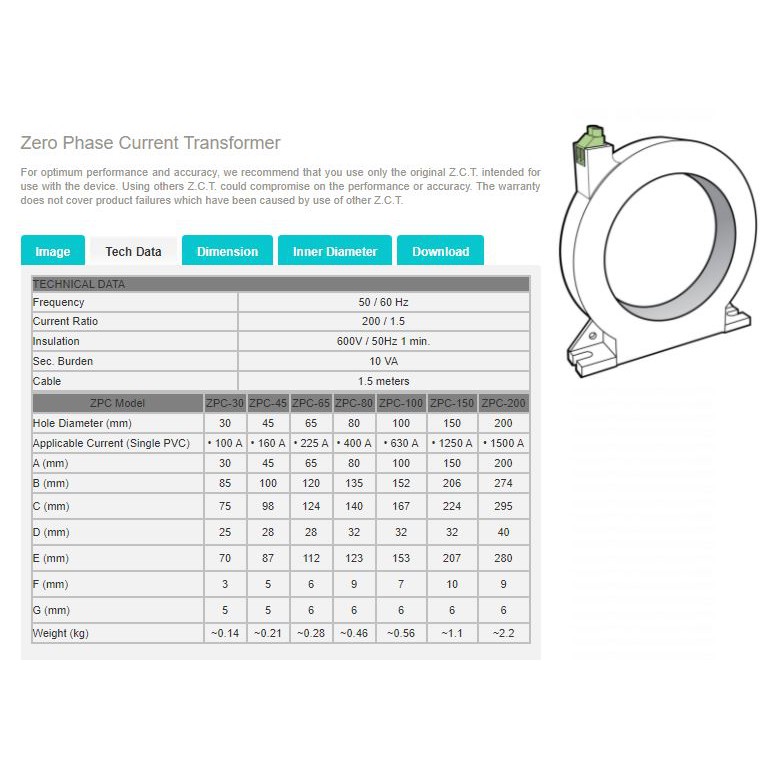 DELAB ZCT 25mm 45mm 65mm 80mm 100mm 150mm Zero Phase Current Transformer - JKR APPROVE!!!