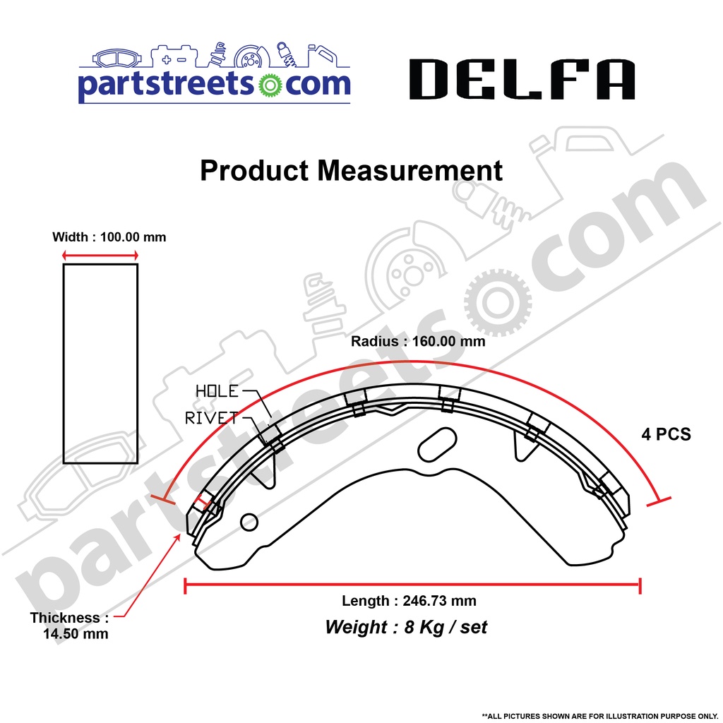 DELFA Rear Brake Shoe - Isuzu NPR 4.3 - K4459R (1 set)