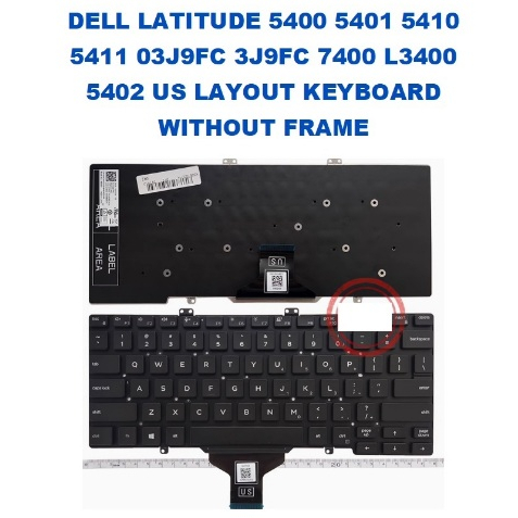 DELL LATITUDE 5400 5401 5410 5411 03J9FC 3J9FC 7400 L3400 5402 US LAYOUT KEYBOARD WITHOUT FRAME