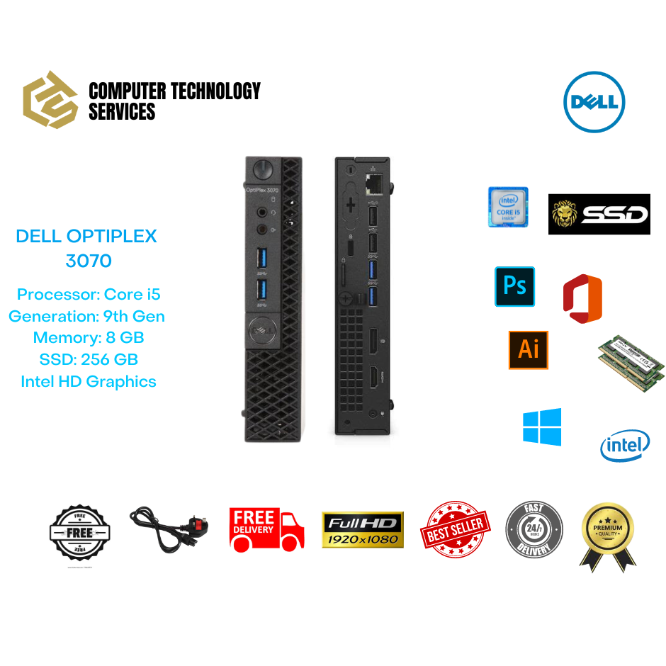 DELL OPOTIPLEX MINI PC 3070 / 7050 / 7040 CORE I5 9TH / 7TH / 6TH GEN 8GB RAM 256GB SSD FREE GAMING MOUSE AND KEYBOARD