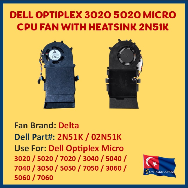 DELL OPTIPLEX 3020 5020 7020 MICRO CPU FAN WITH HEATSINK 2N51K 02N51K 5JV3N 05JV3N 3040 5040 7040 3050 5050 7050