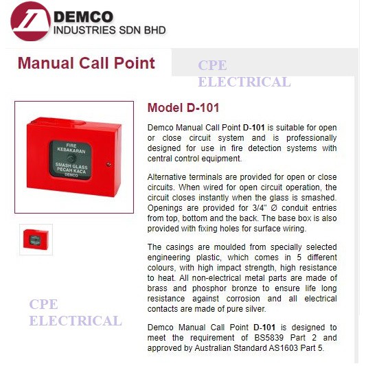 DEMCO D-101 Manual Call Point