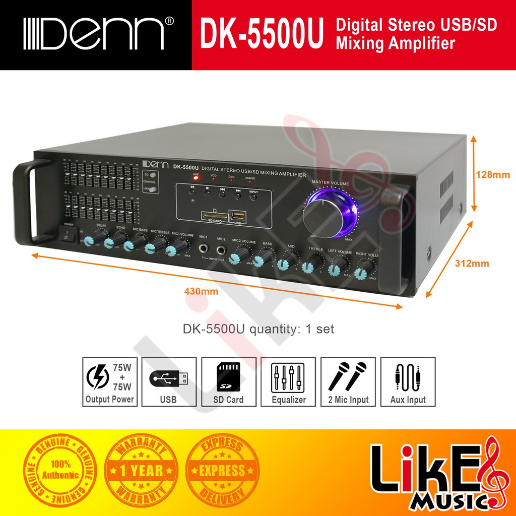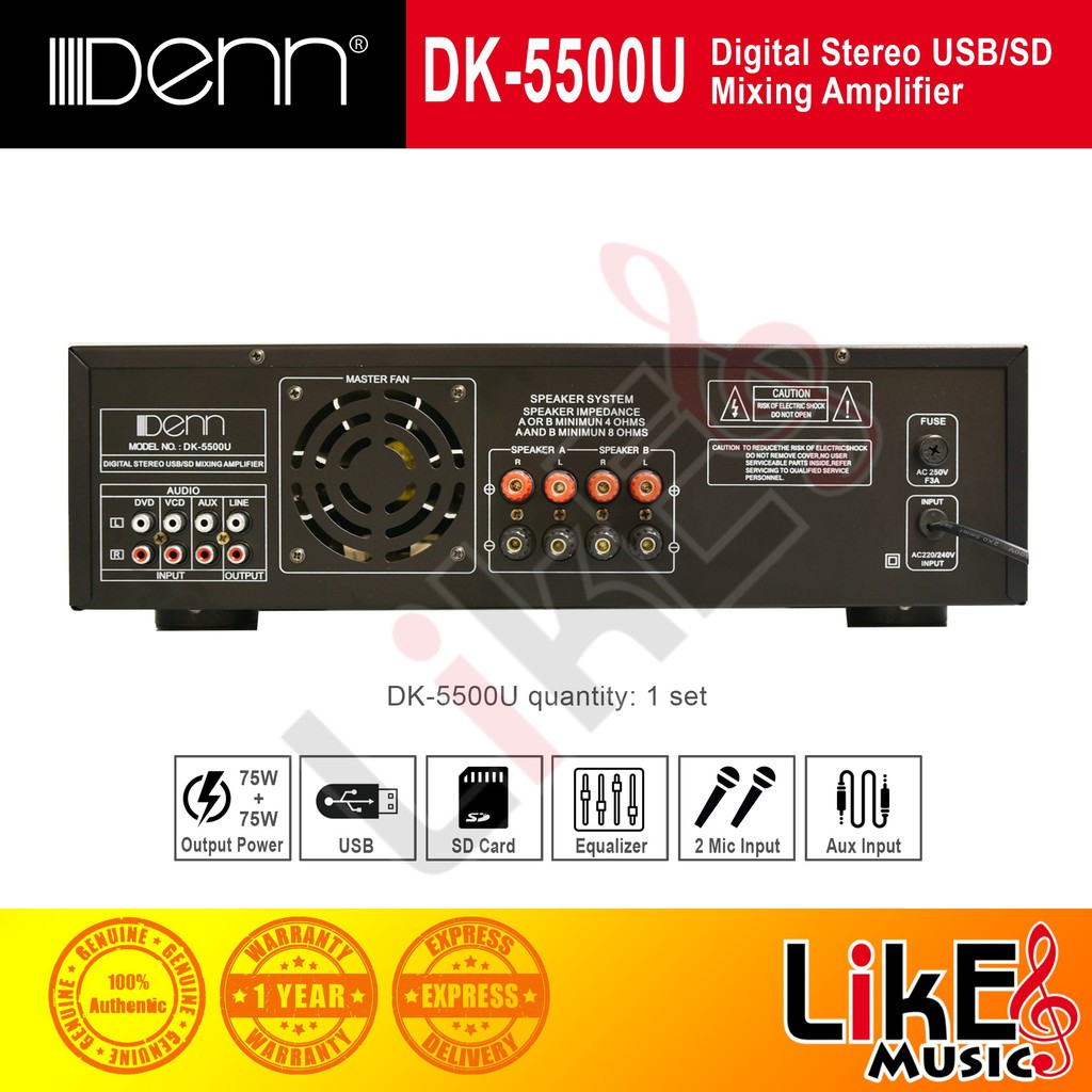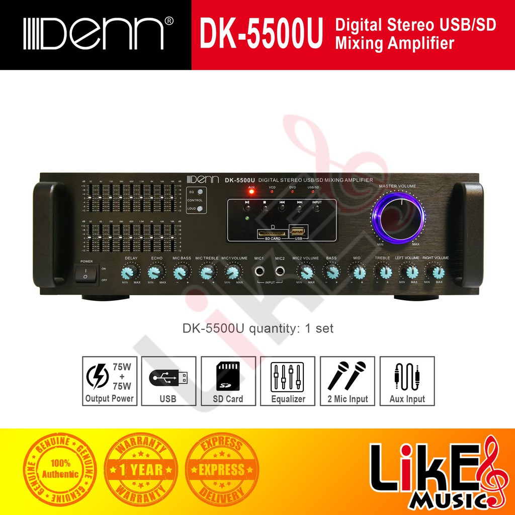 DENN DK-5500B Digital Stereo Mixing Amplifier (USB/BT)
