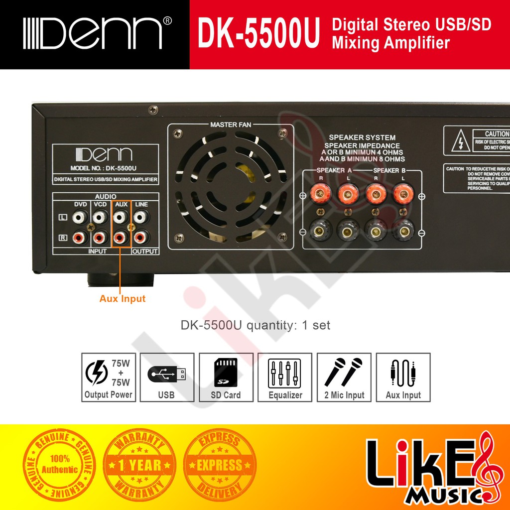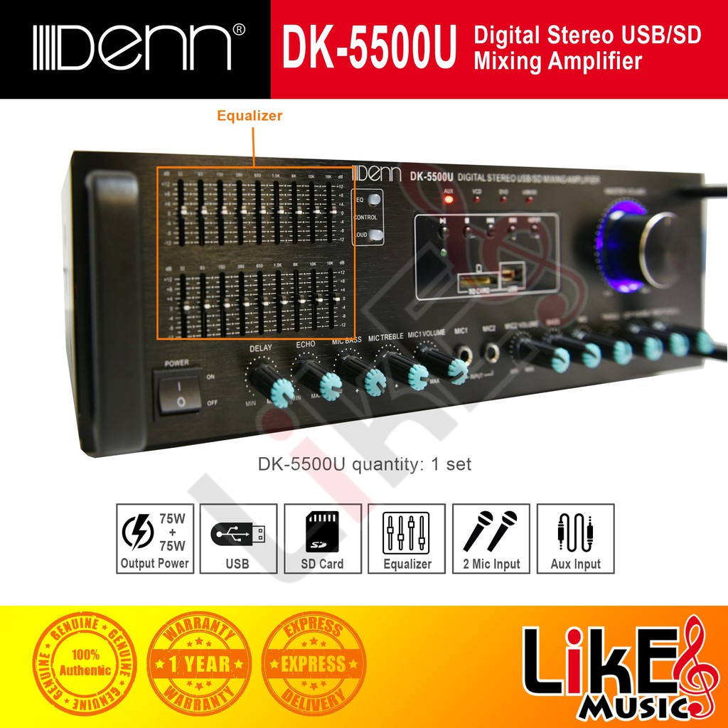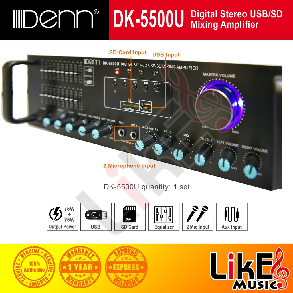 DENN DK-5500B Digital Stereo Mixing Amplifier (USB/BT)