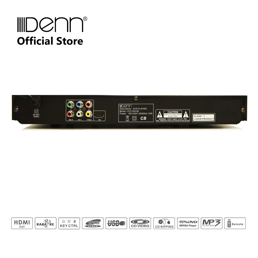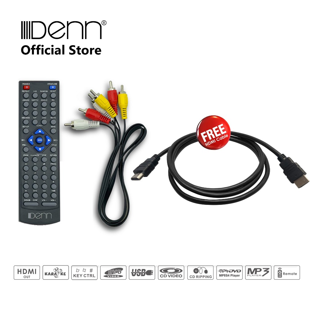 DENN DVD-94HUK Karaoke DVD Player (HDMI Output / DVD / USB / 2 Mic Input / Key Control / Audio L-R Selector)
