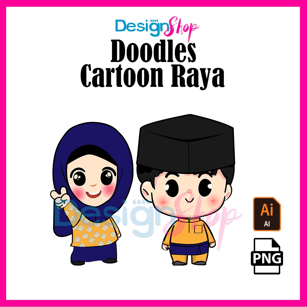 DESIGN ONLY. TEMPLATE DOODLE CARTOON RAYA UNTUK SAMPUL RAYA