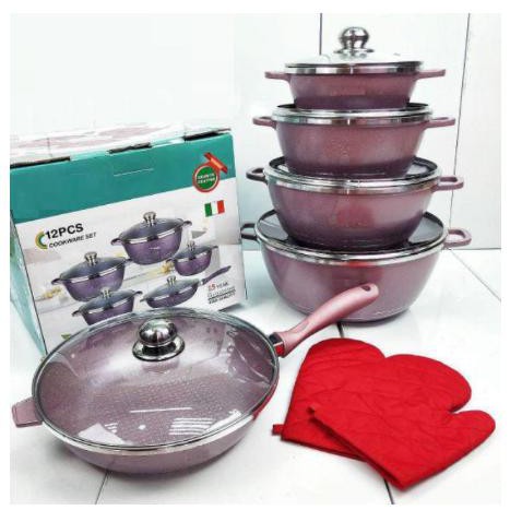DESSINI ITALY 12PCS / NON STICK CERAMIC COATING COOKING SET PERIUK VIRAL / READDY STOCK