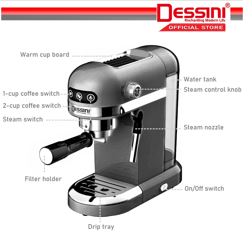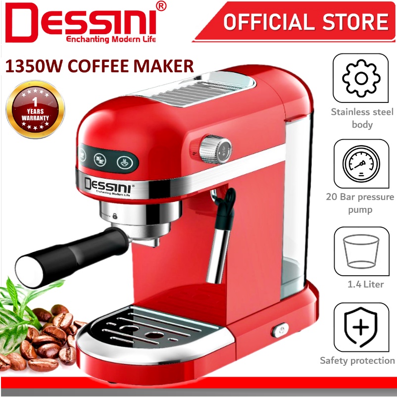 DESSINI ITALY 20 Bar 1.4L Espresso Coffee Maker Brew Froth Cappuccino Latte Machine Milk Frothing Bubble Steamer