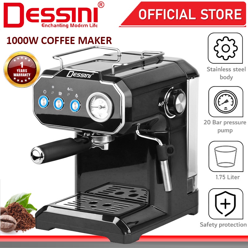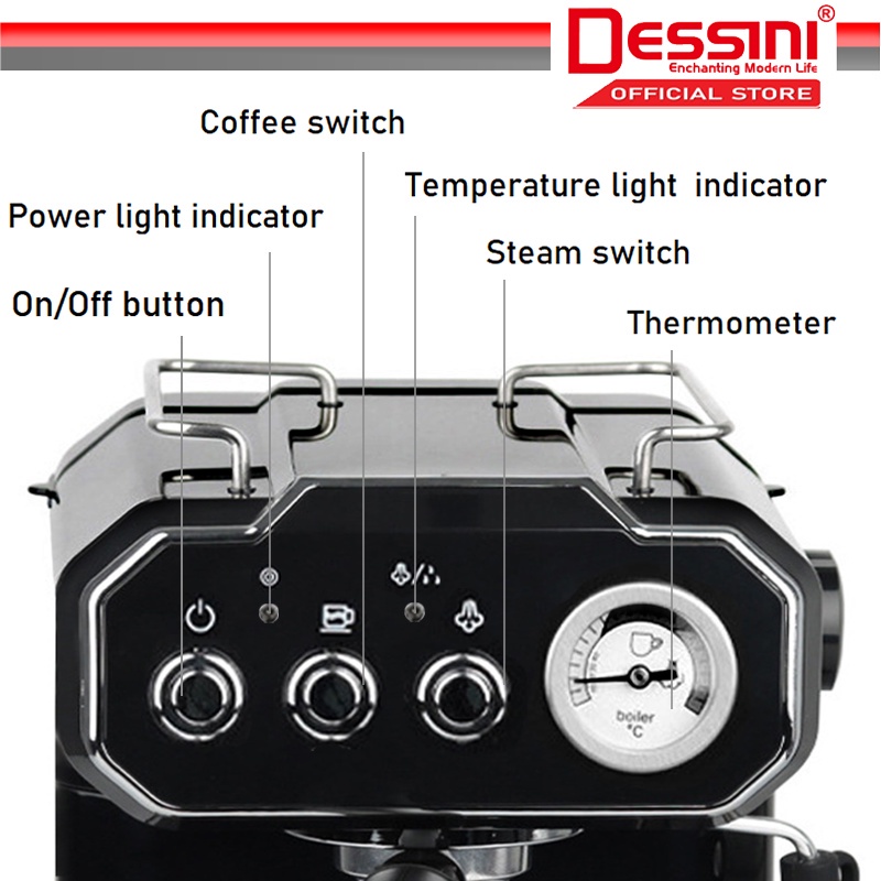 DESSINI ITALY 20 Bar 1.75L Espresso Coffee Maker Brew Froth Cappuccino Latte Machine Milk Frothing Bubble Steamer