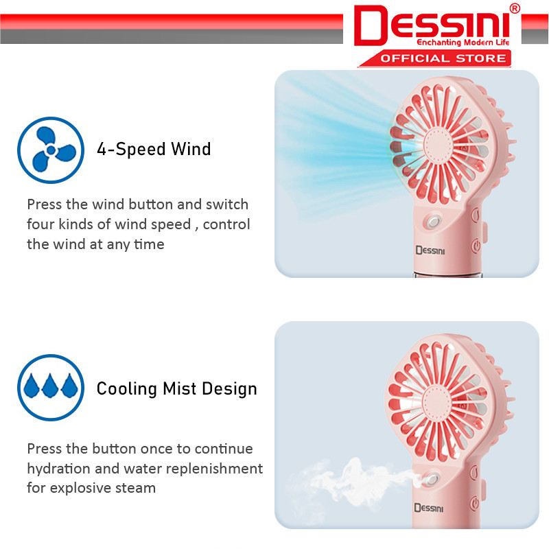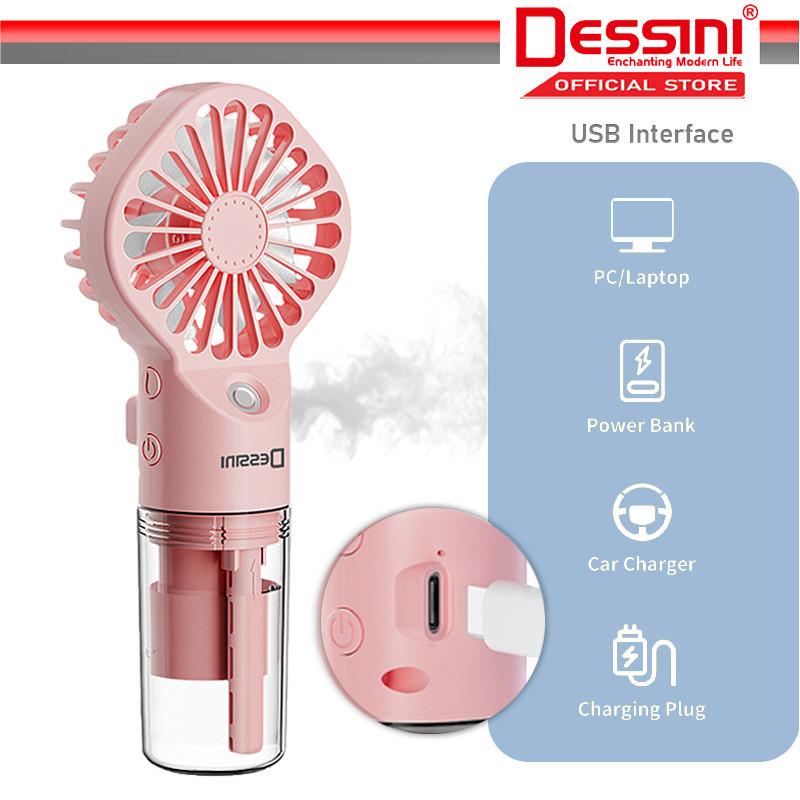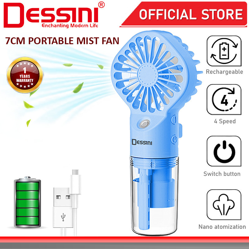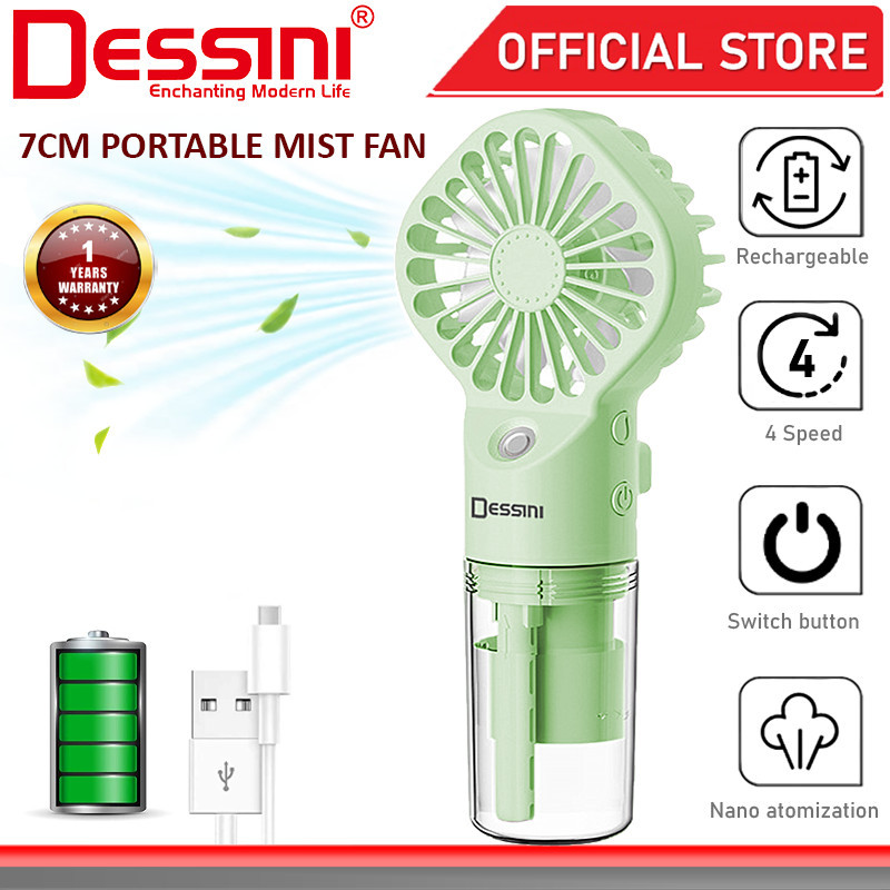 DESSINI ITALY 4 Speed USB Rechargeable Mist Fan Nano Atomizer Air Ventilator Conditioner Cooler Humidifier Kipas