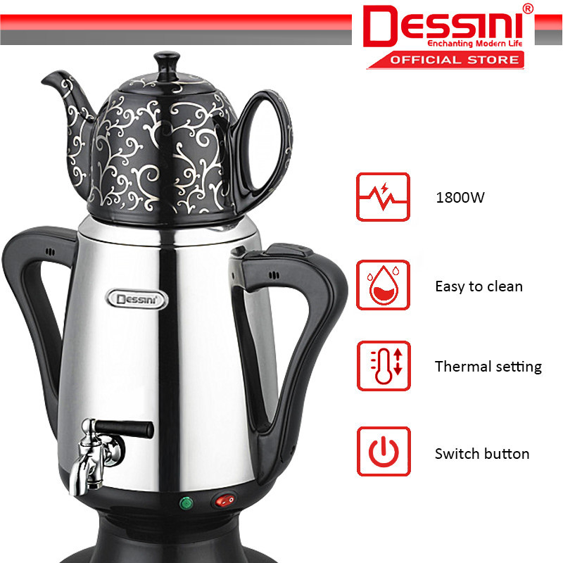 DESSINI ITALY 4.0L + 1.0L Stainless Steel Electric Kettle Automatic Cut Off Boiler Jug Ceramic Teapot / Cerek